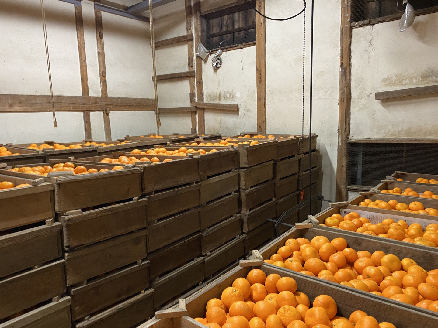 12月下旬に収穫し、木箱に入れ砂壁の貯蔵庫で熟成させます。木箱に入れることによって余計な酸味が飛び、濃厚でまろやかな味に仕上がります。