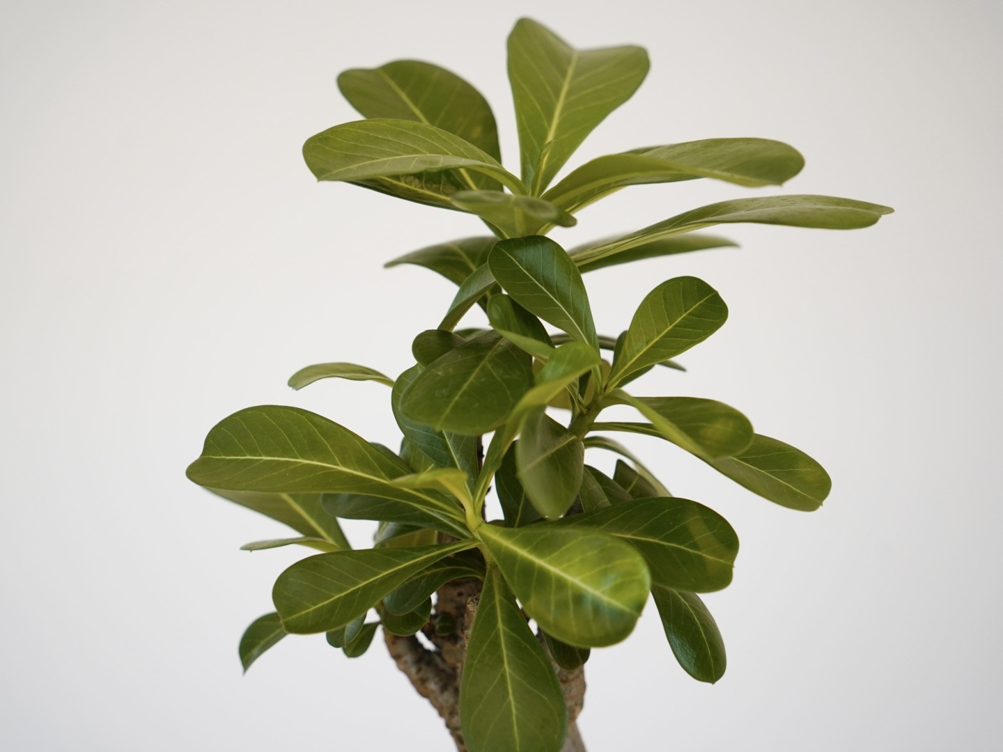 大きく膨らんだ太い根元と多肉質な枝が印象的なアデニウム。