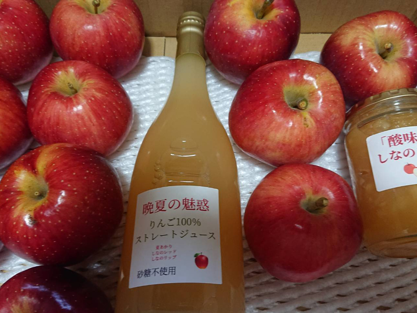 シナノスイート約3kgと「晩夏の魅惑」100%ストレートジュースとしなのレッドジャム