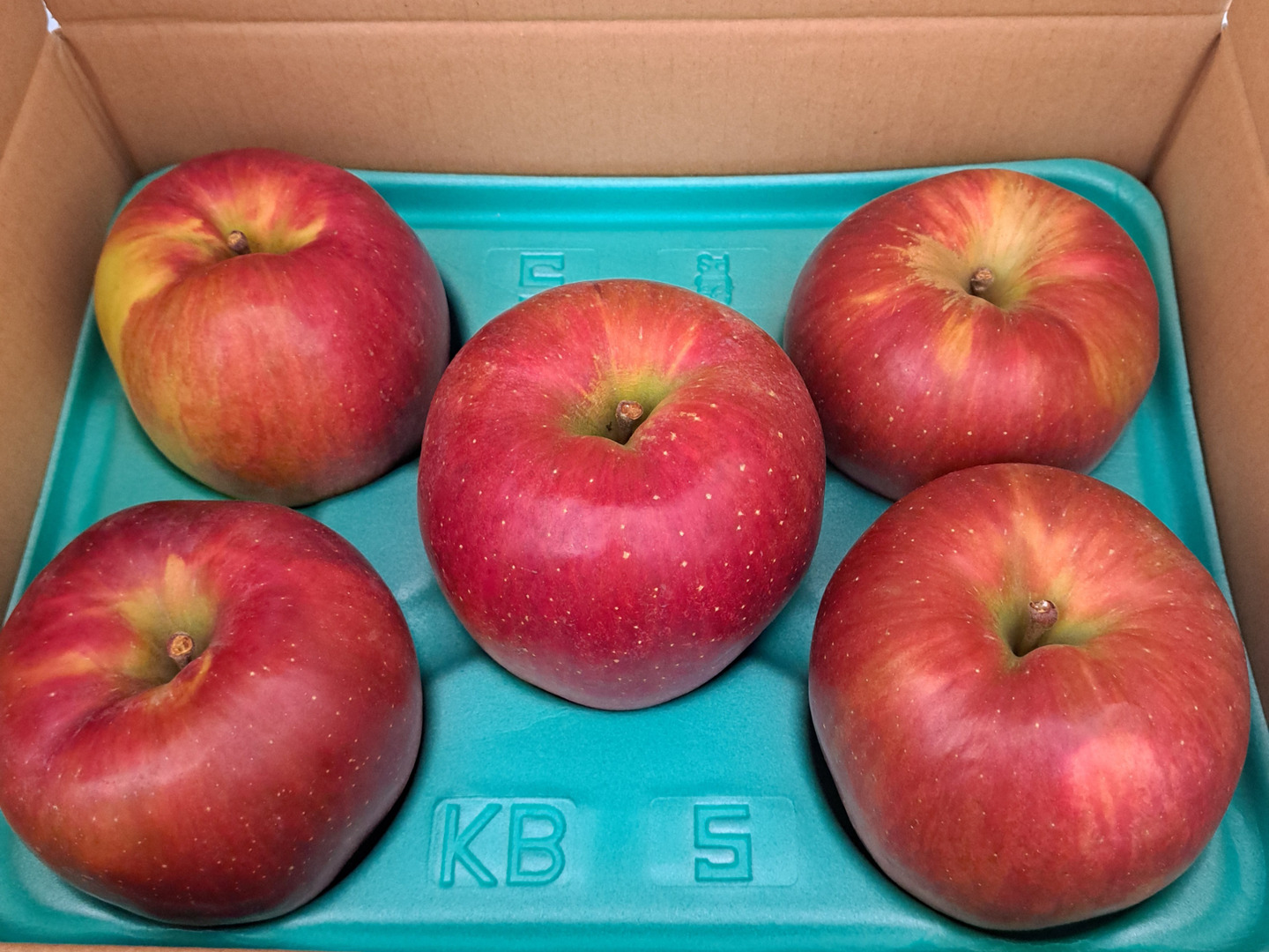 こちらは試験場で品種改良したものではなく、長野県の農家さんの畑でたまたま発見されたりんごで、自然交配から生まれた純天然物のりんごです。