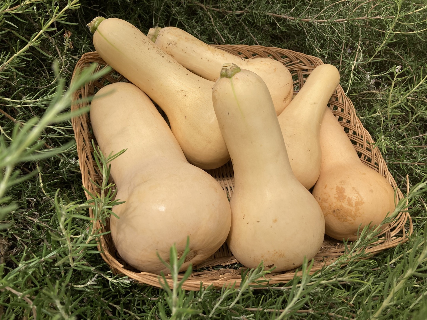 名前からも想像できる通りねっとり濃厚なお味で、繊維が少なくなめらかな口当たり。スープにも、お菓子づくりにも向いています。カレーや、薄くスライスしてニンニクと一緒に炒めおつまみにもどうぞ。アルミホイルに包んで、薪ストーブやオーブンで焼く、焼き芋ならぬ「焼きバターナッツ」も最高です。