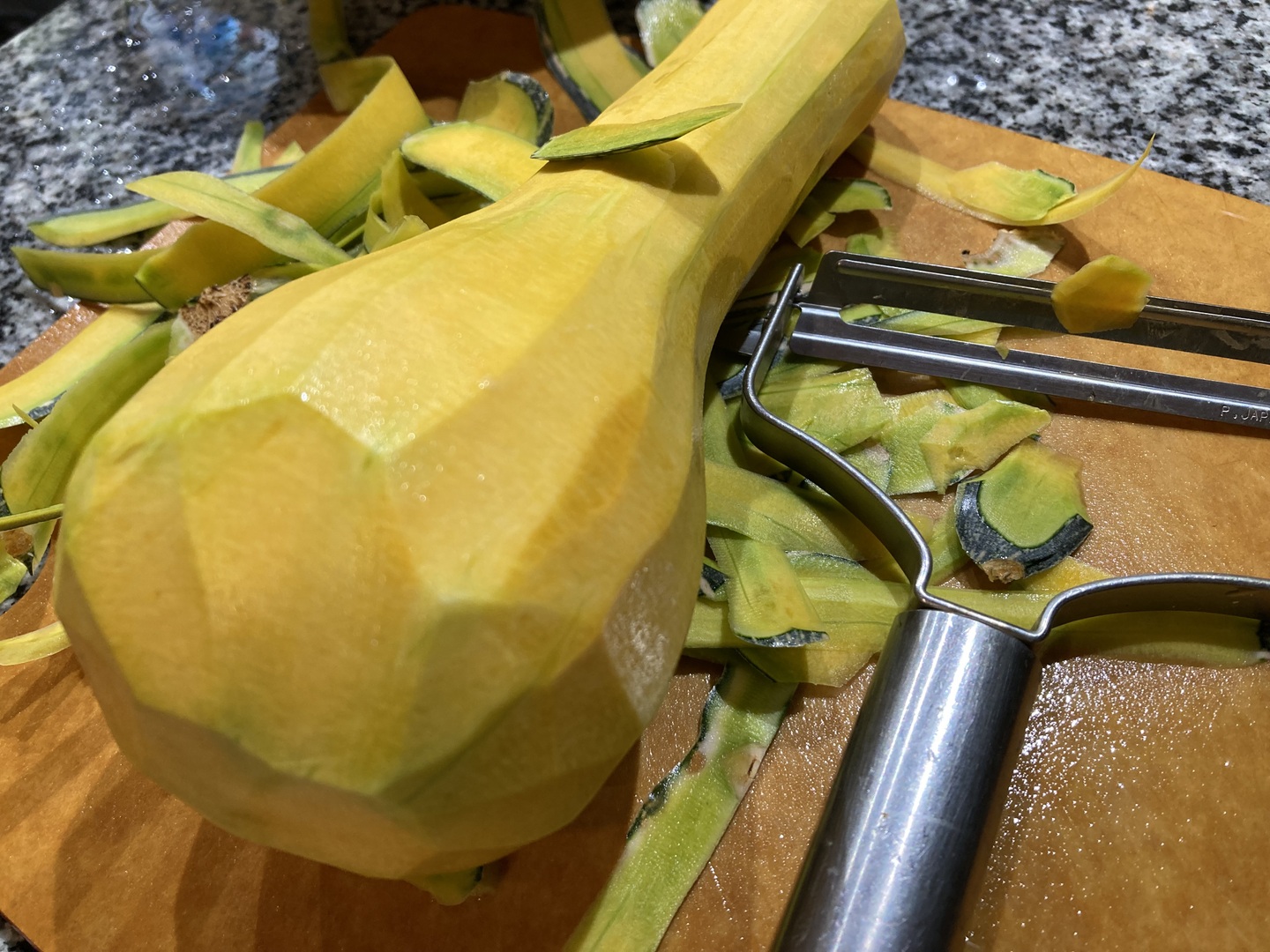 大きくても1kg前後なので使い切りやすく、皮が薄いのでピーラーでも剥けます。種はひょうたん型になったお尻の方に固まっているので取り出しやすく、食べられる部分がたっぷり。