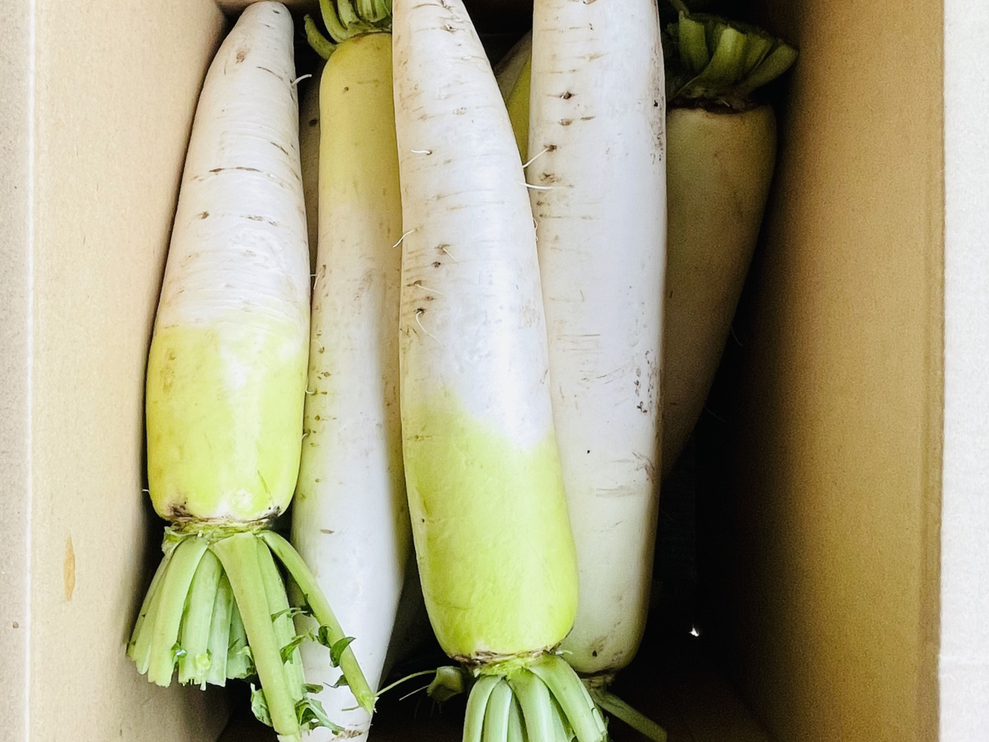 首と尾を切り落とし、根長約15cm以上の大根の詰め合わせです。