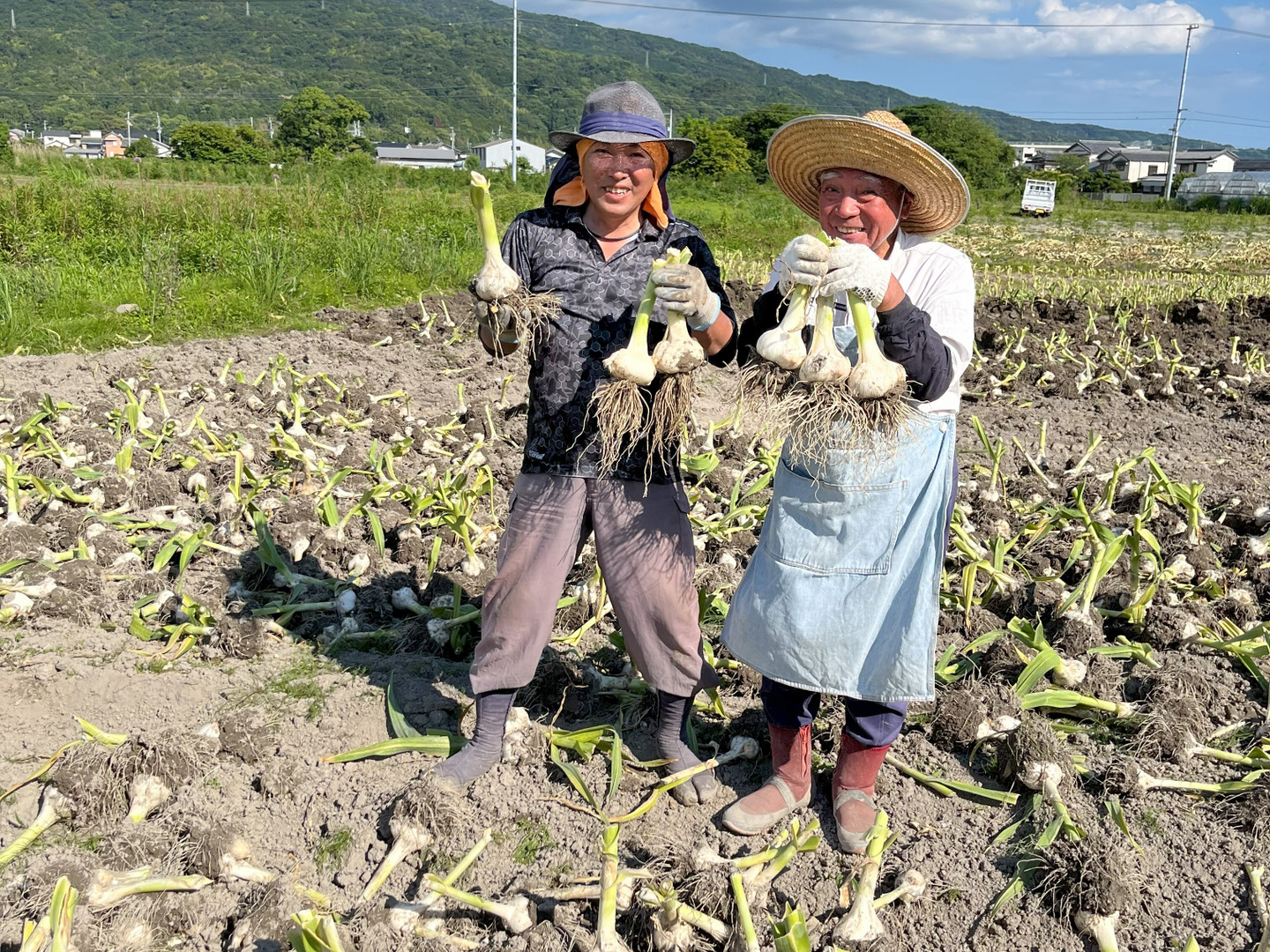 高知県東部が産地、[にんにく]とは異なる品種でネギ科の野菜です。甘み、ホクホクした食感、わずかなにんにく臭です。