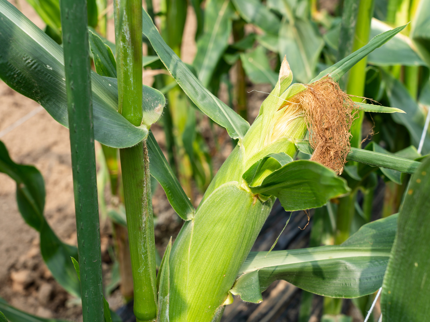 トウモロコシと相性の良い豆類の緑肥で土作りを行います。元気なトウモロコシを栽培するには、大きな葉で積極的に光合成を行える状況を作ることが肝心です。播種後には葉の数、雄穂、雌穂の状態を確認しながら、タイミング良く追肥を繰り返し実に栄養が集約されるように育てていきます。