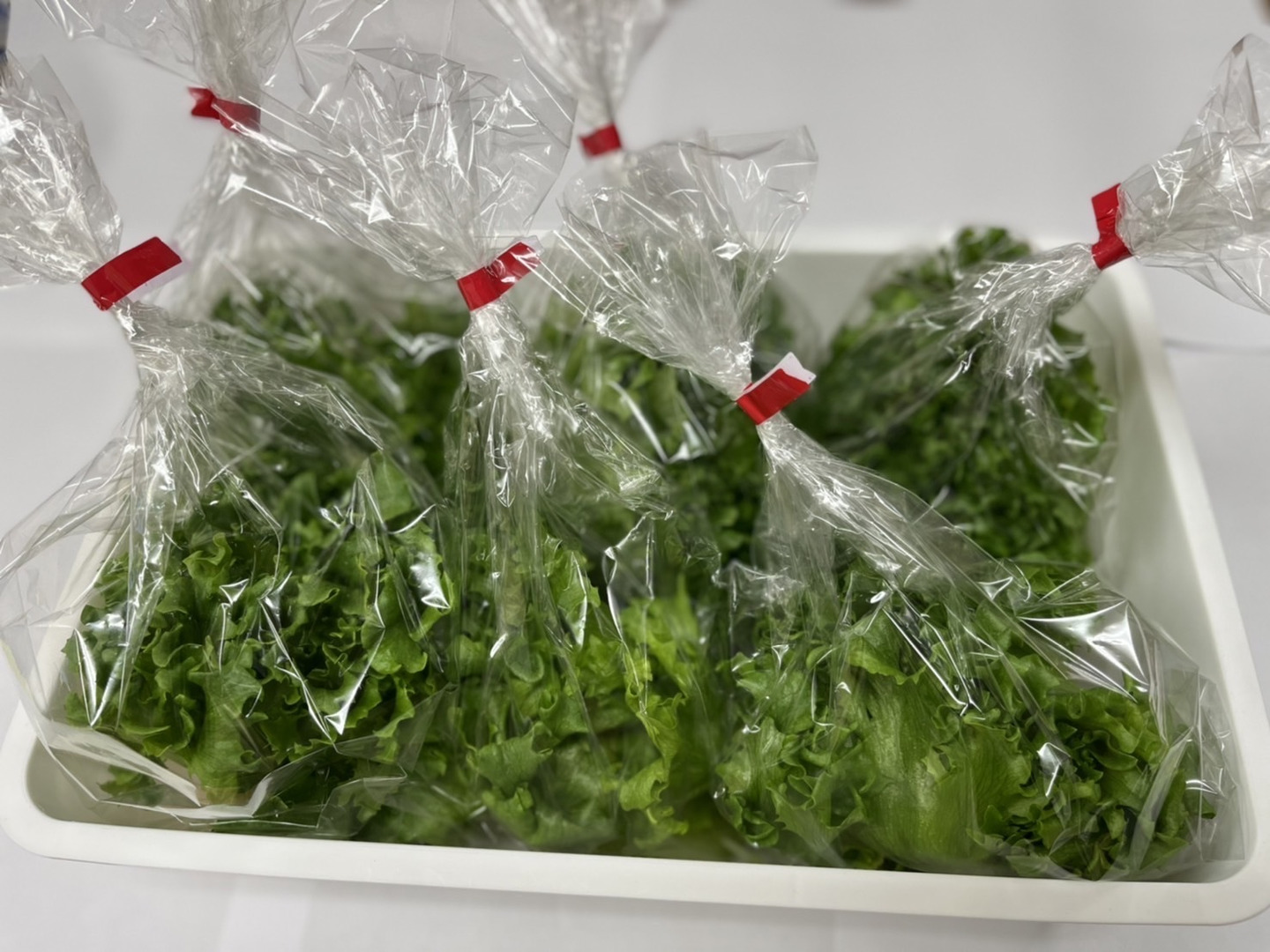・袋から出すと葉が傷つきやすくなりますので、個包装のままで冷蔵後に保管してください。