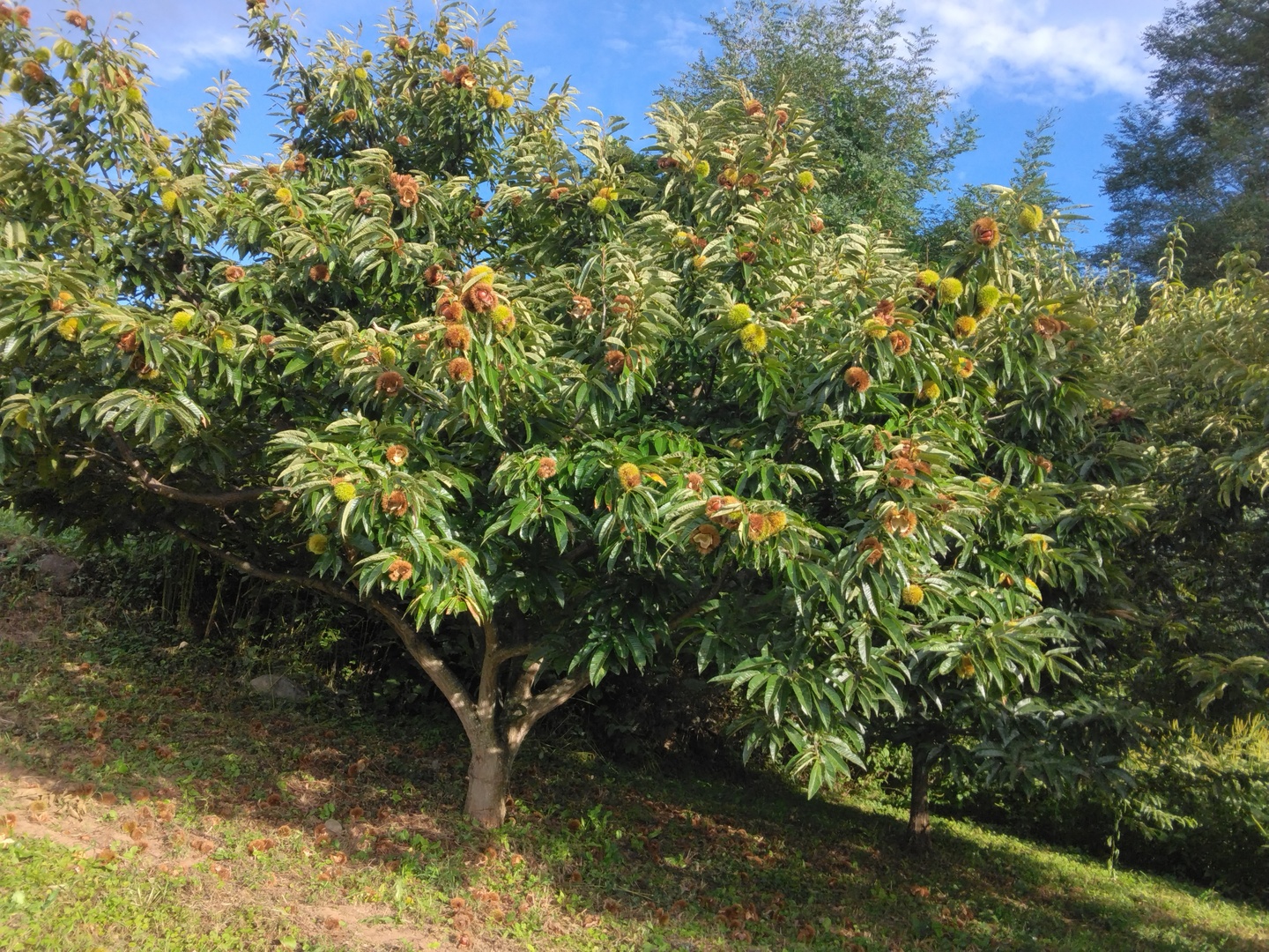 早生の丹沢栗から晩生の(品種不明)ものまで6本あります。これからひと月余り収穫が続きます(品種が複数となる可能性