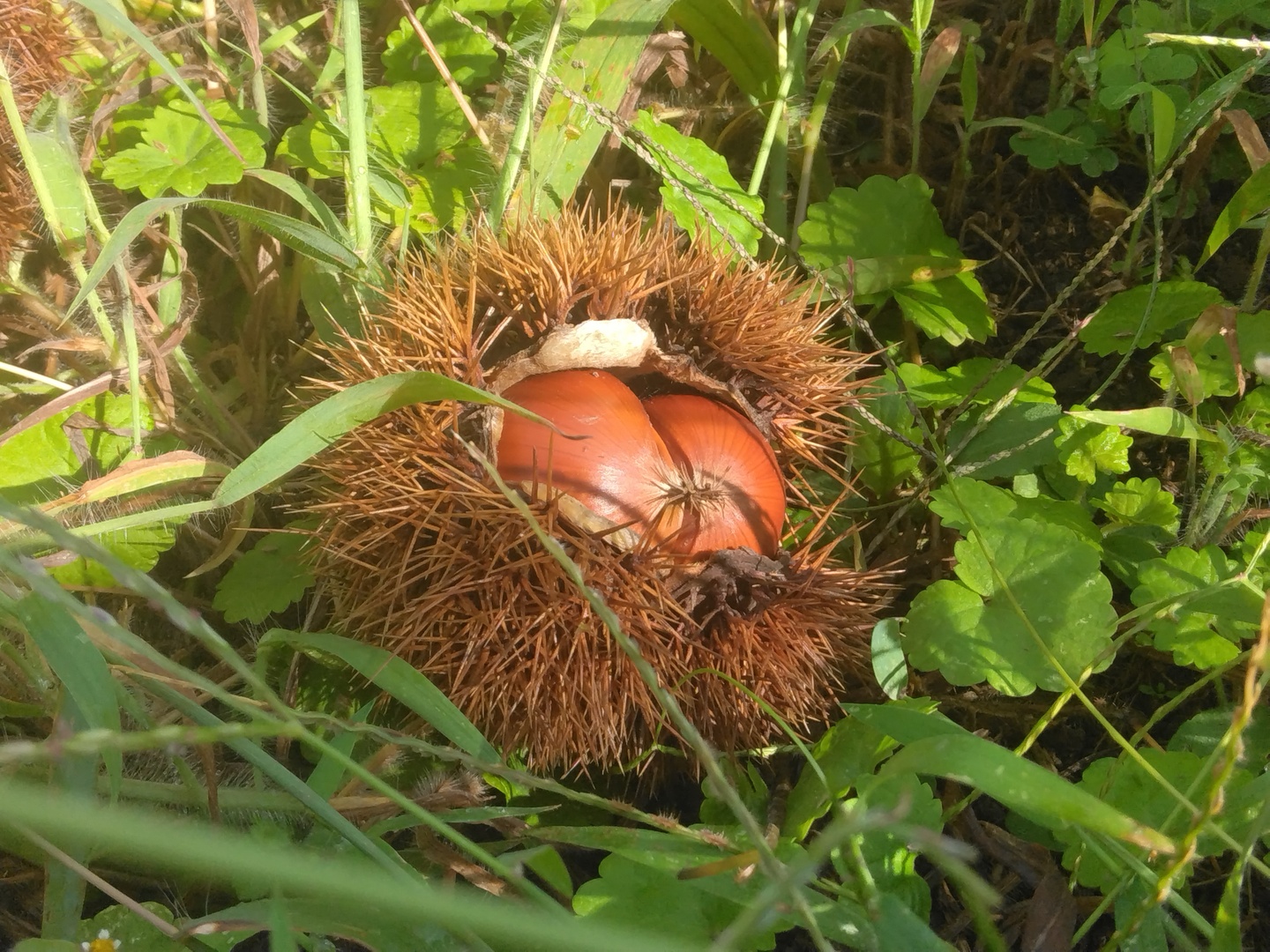 当農園の栗の木に生った実が落ち始めました。