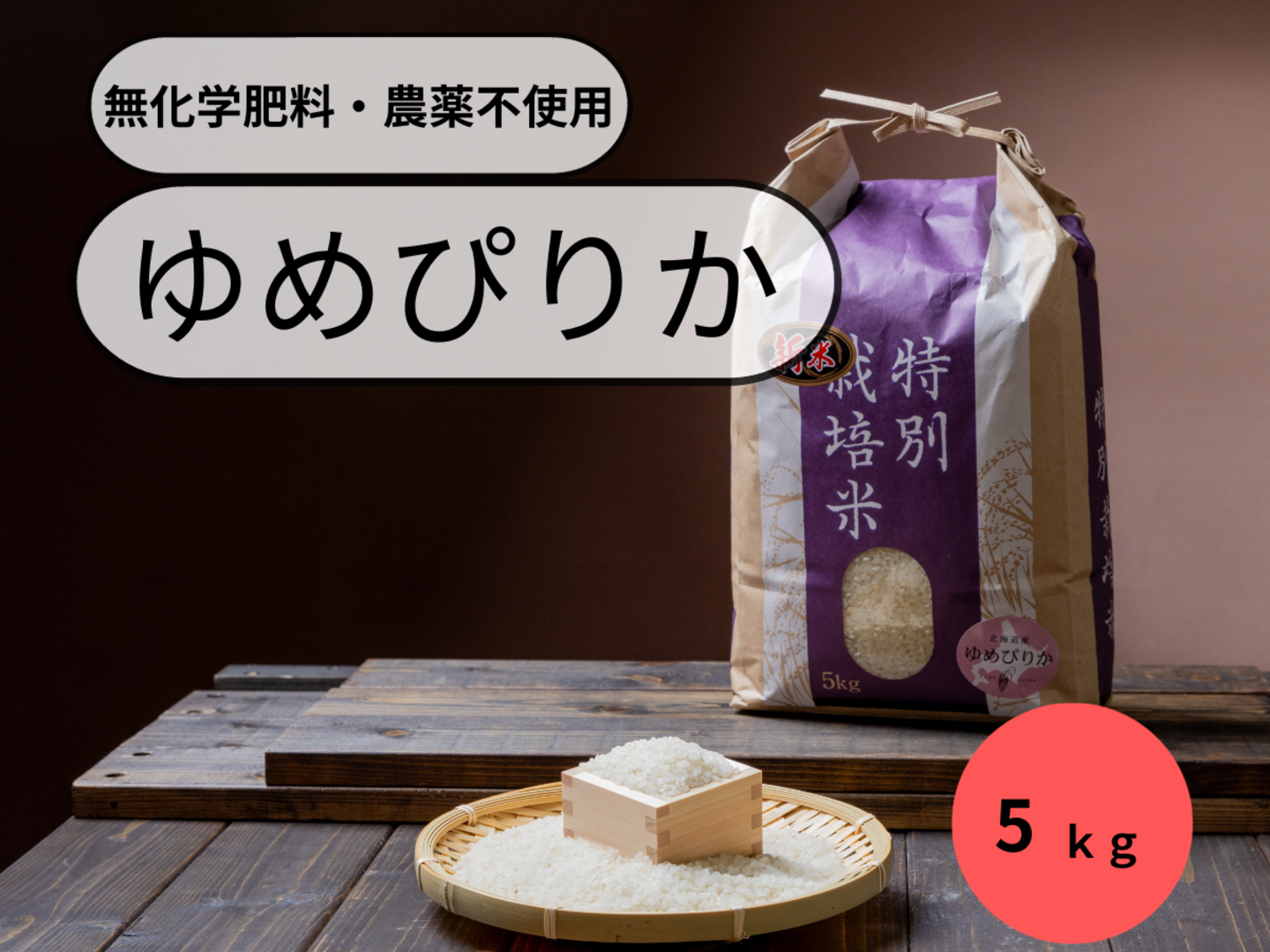 ※写真はゆめぴりか除草剤1回使用のみのラベルになっていますがお送りする際は化学肥料、農薬不使用でのラベルになります。