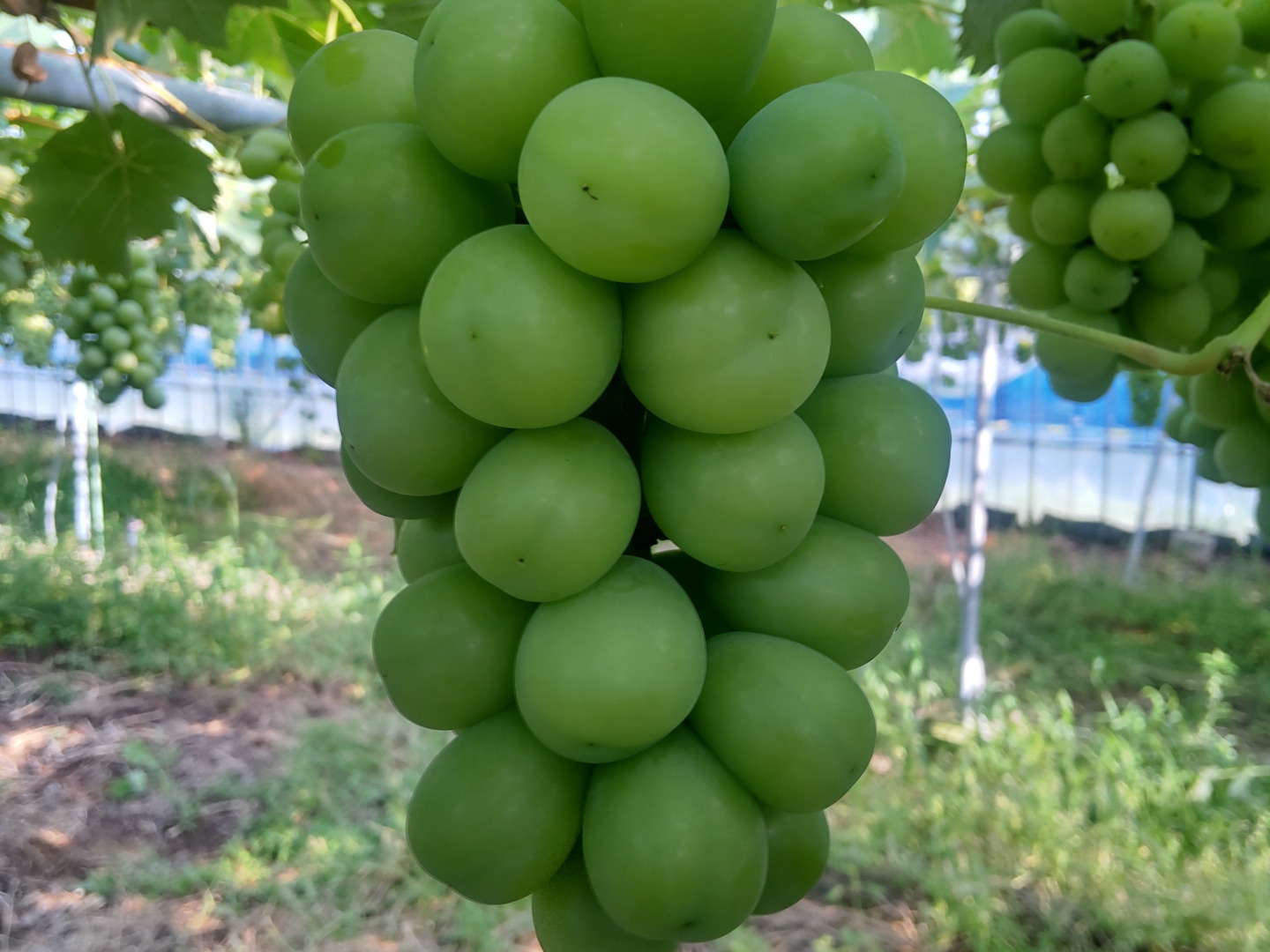 圧倒的な存在感で気品溢れるたたずまい。女王の品格のシャインマスカット。見た目の美しさもさることながら、弾ける食感とマスカットの香りをまとう姿はまさに女王の名に相応しいぶどうです。