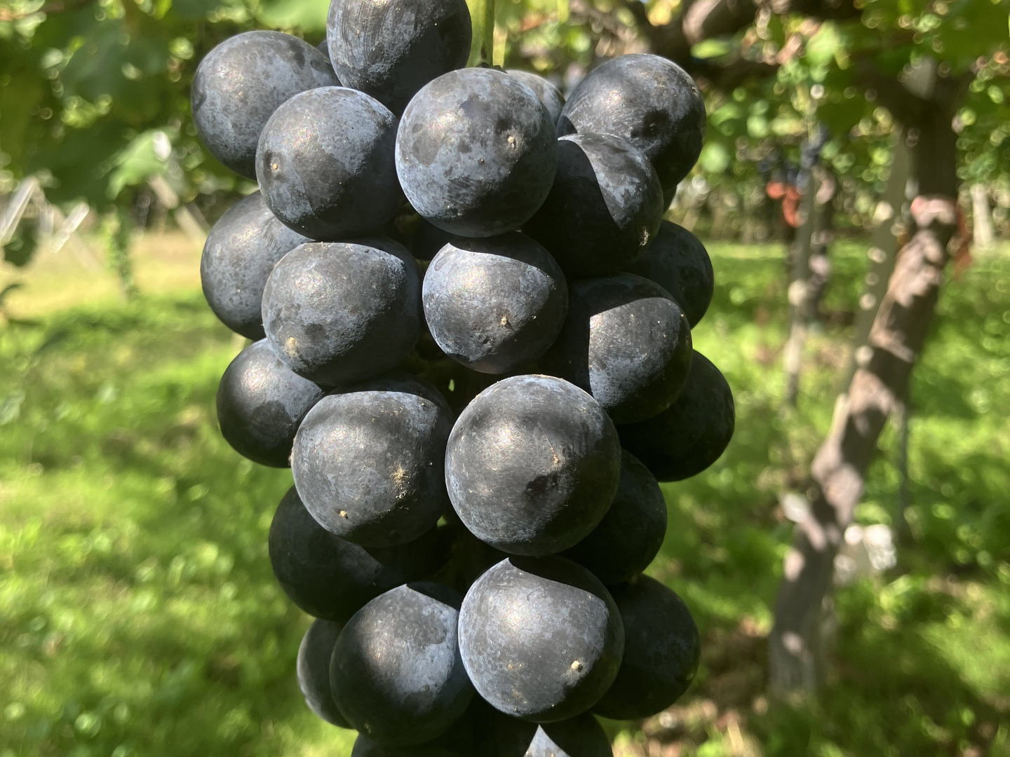 皮ごと食べられる、種無しぶどう「ナガノパープル」。