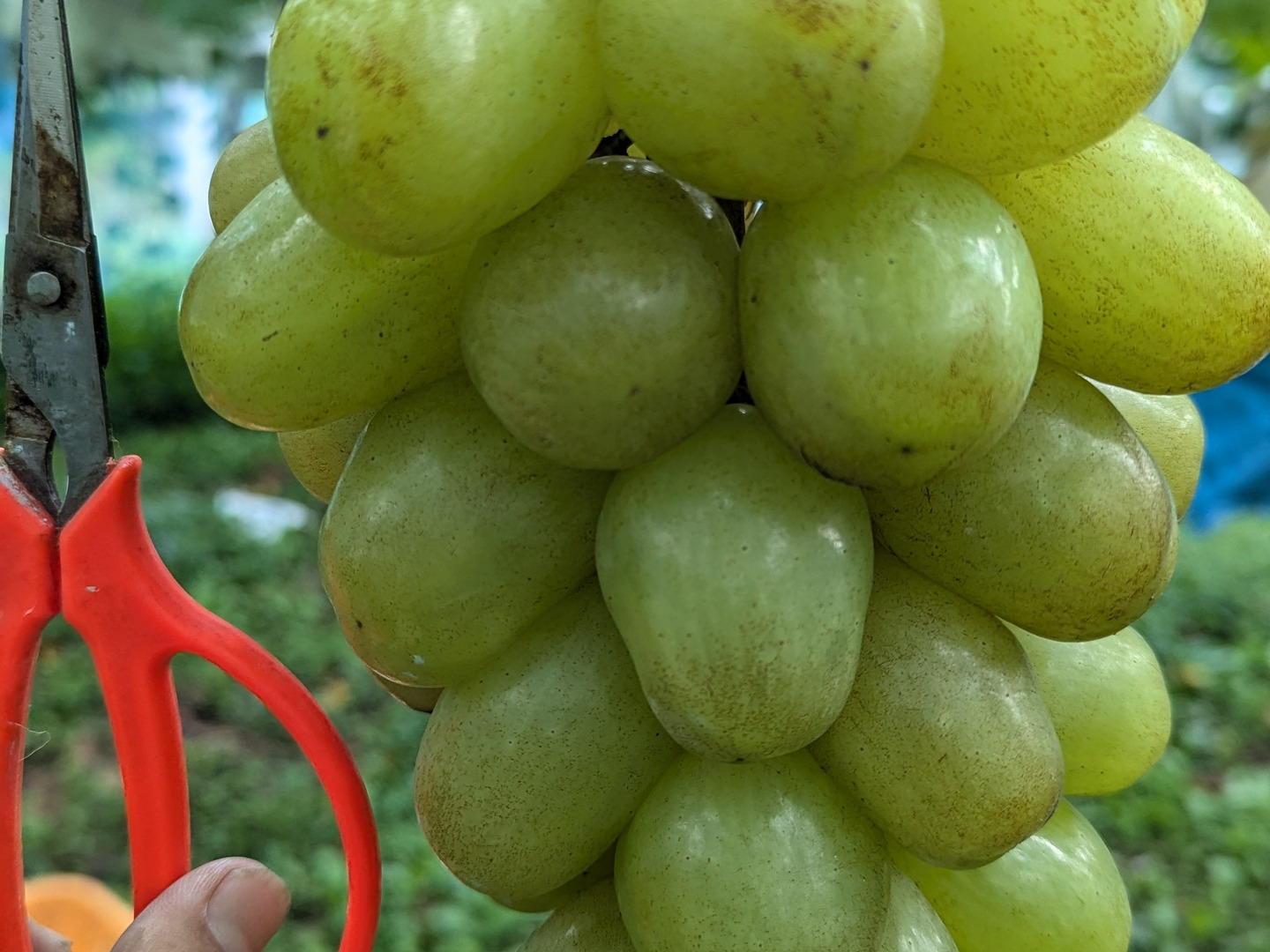 品種特性上皮が薄いので、カスリ(房のシミのようなもの)やサビ、キズが出やすい品種です。御理解の上ご検討よろしくお願いします。
