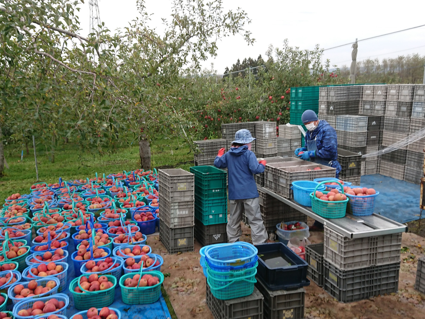 甘味と栄養をつくる器官である葉っぱを摘み取らない事により、濃厚で甘い果汁溢れるりんごに仕上げました。
