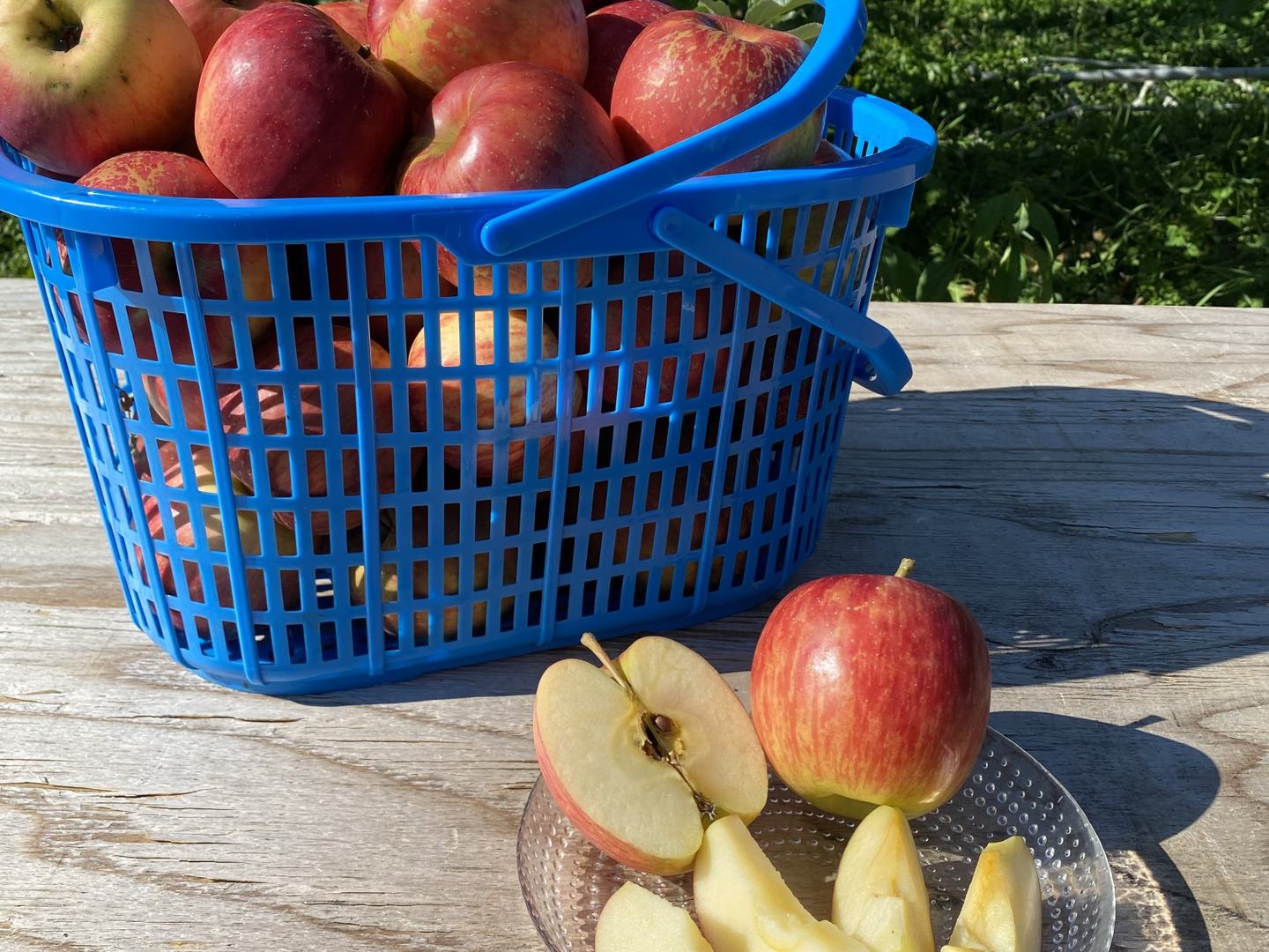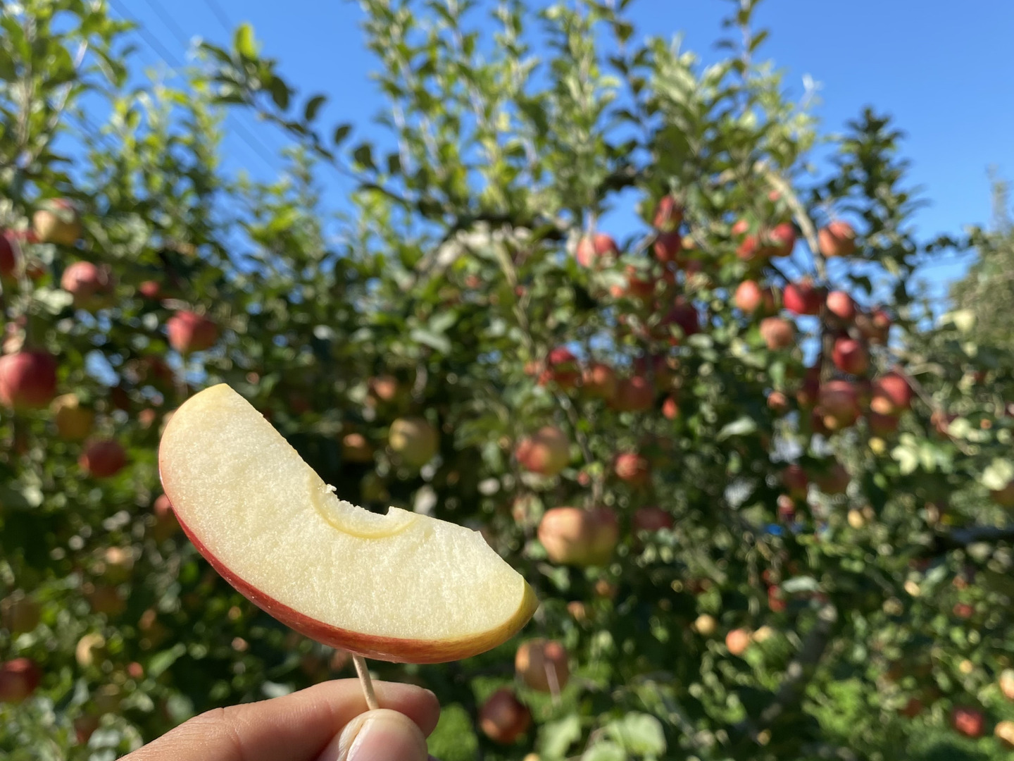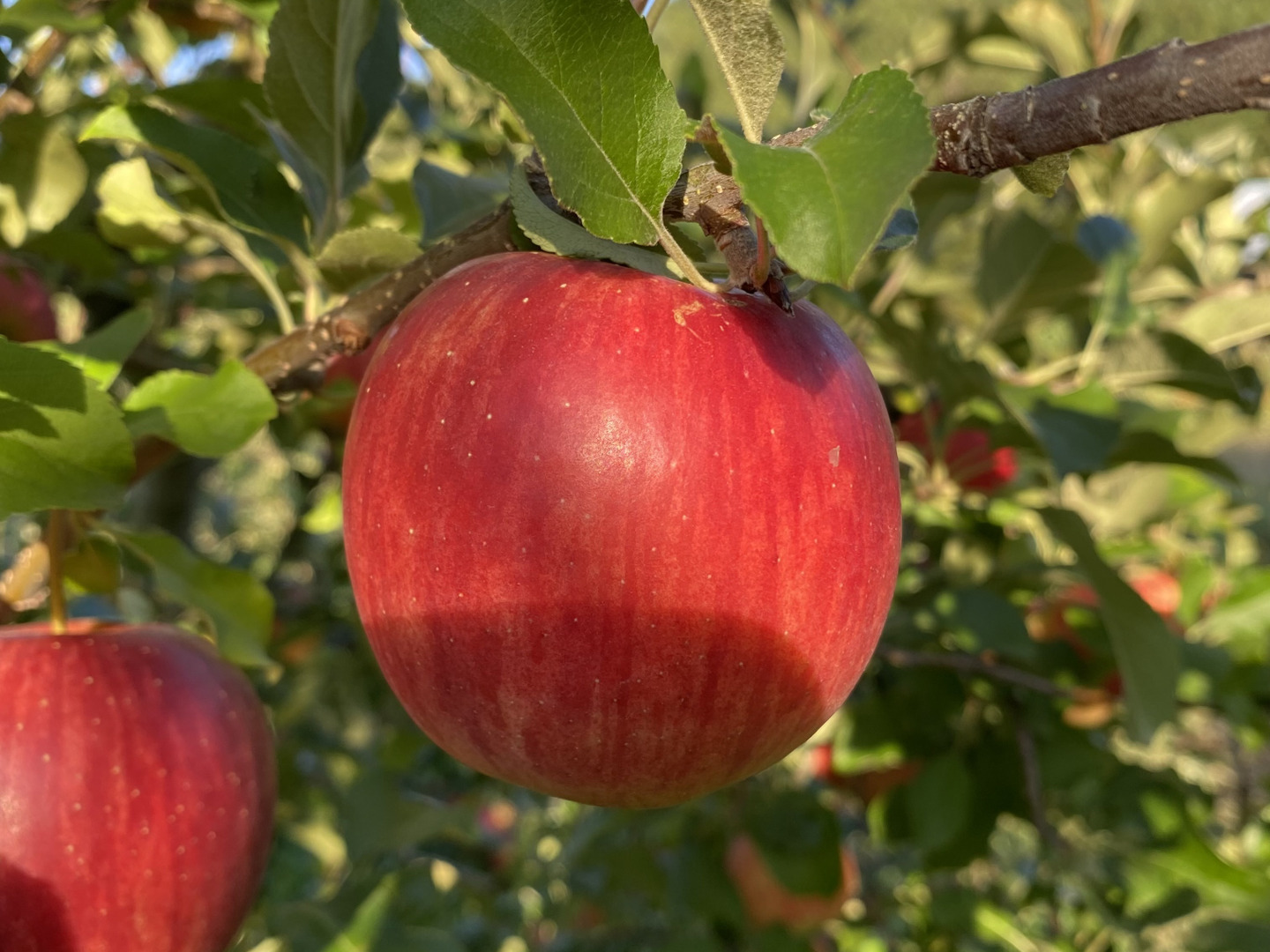周りの葉っぱを綺麗に取り、綺麗なりんご特有の赤色をつけました!