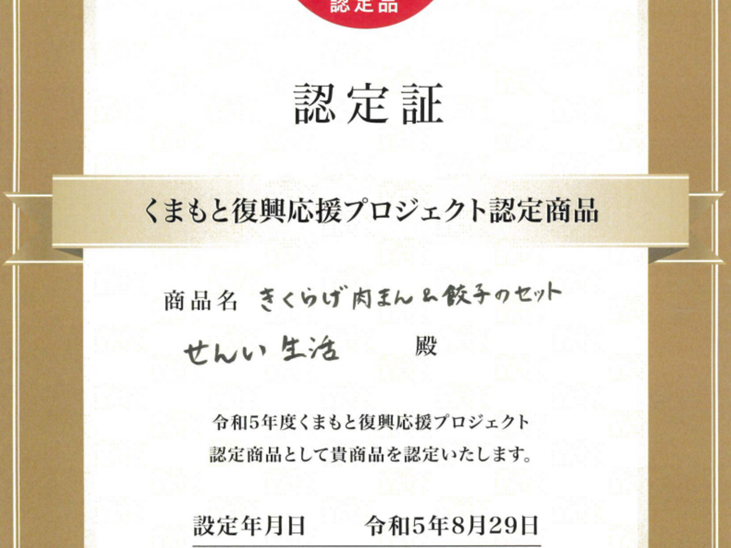 ☆『くまもと復興応援プロジェクト』認定商品受賞