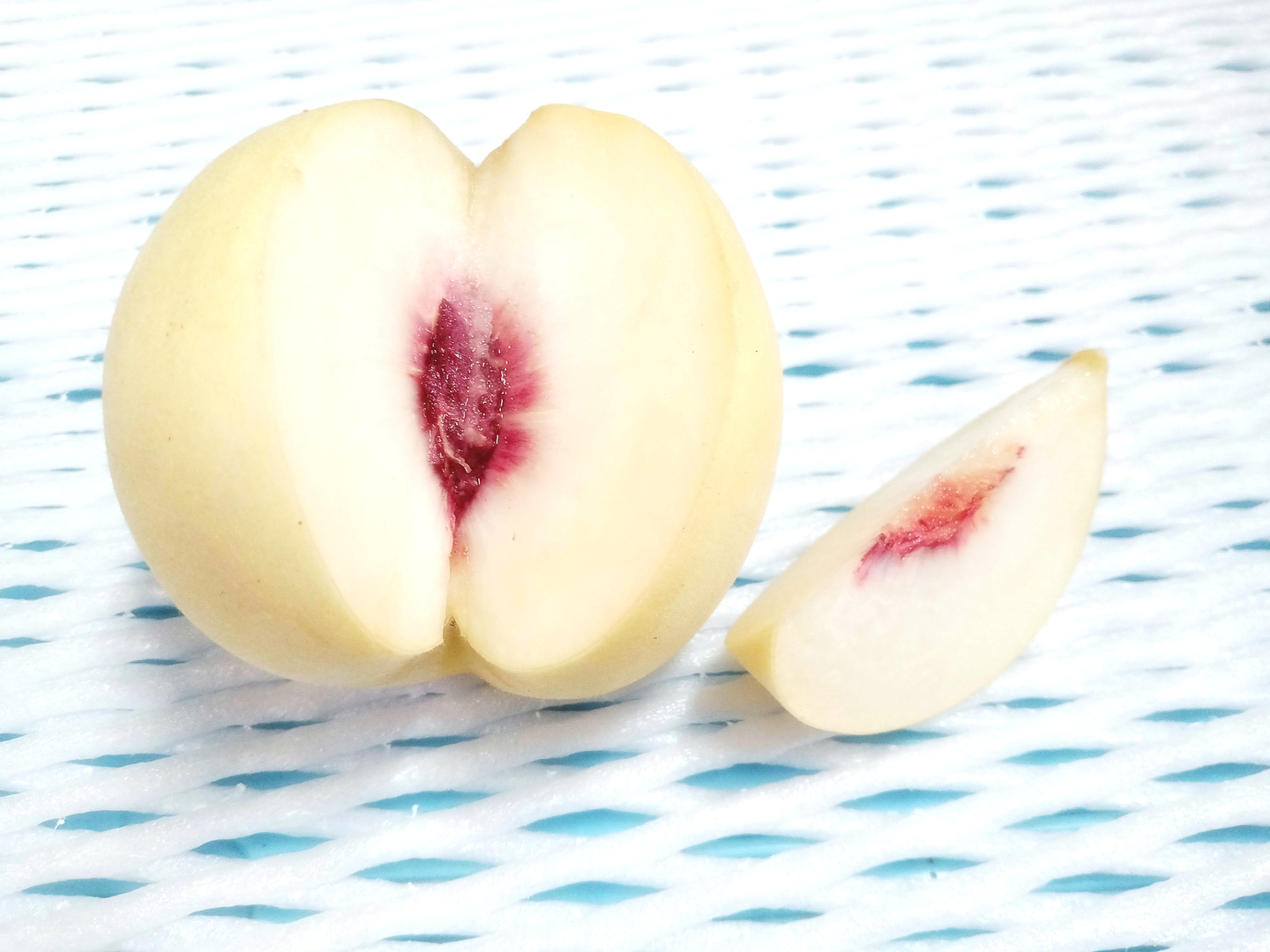 もの凄く甘い桃というのがこの品種のふれこみらしいのですが、それをもともとの当園の"味が濃い果実を"という技術コンセプトでつくってみました。