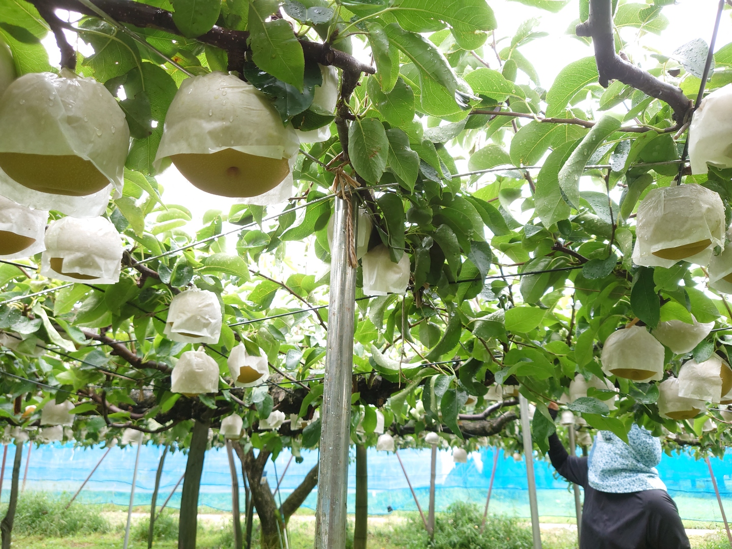 とても手間がかかる上に、糖度が落ちやすいと敬遠されがちな有袋栽培も、さまざまな悪影響から果実を守るために続けます。