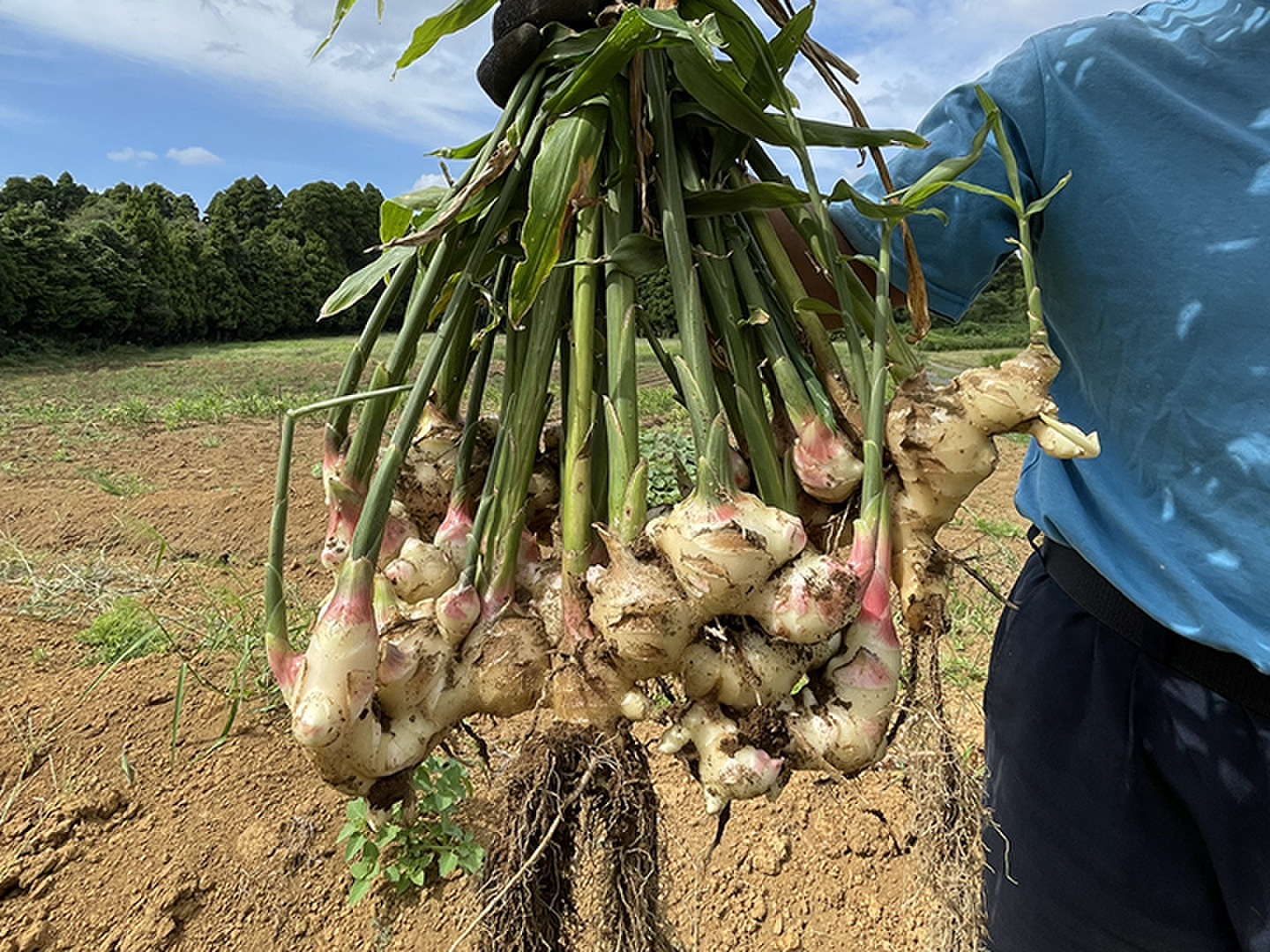 千葉の東海岸は太平洋のミネラル豊富な潮風を受けて育った元気な大生姜です。