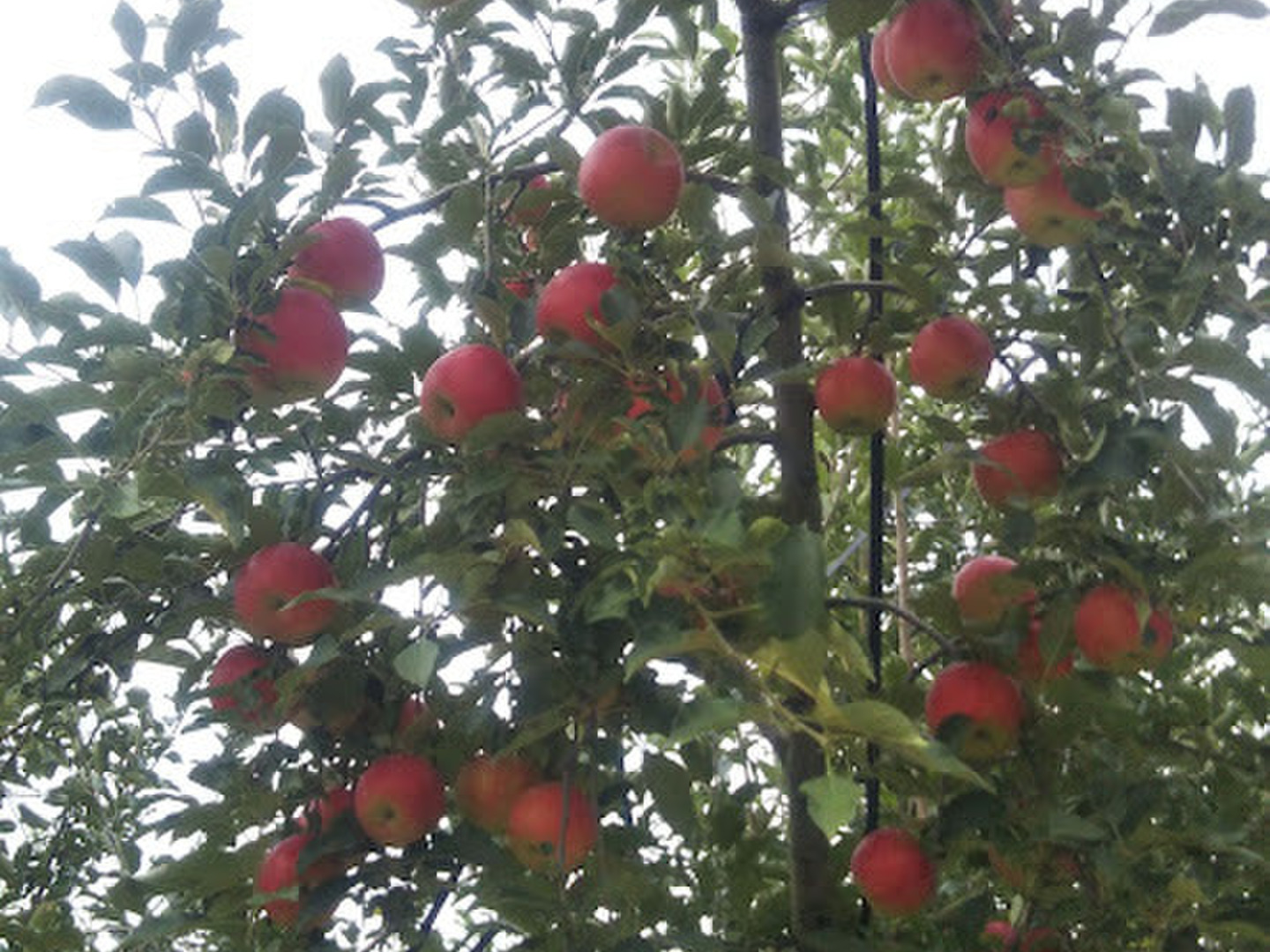 ■普通はりんごに色をつけるため葉っぱを摘み取り、りんごに太陽の光を当てて赤い色をつけるのですが、葉っぱを取らない事で光合成ができ栄養が実に注がれて色は悪い物もありますが、通常よりも旨味のあるりんごが出来上がります。知る人ぞ知る栽培方法です♪