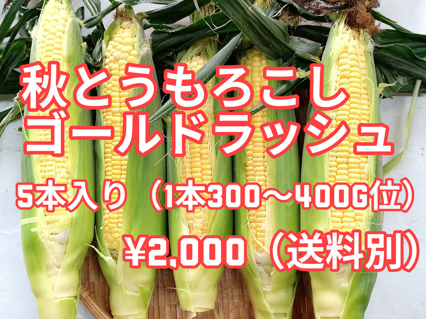 大変希少な秋作とうもろこし『数量限定』⭐ゴールドラッシュ⭐5本入り¥2,000(送料別)