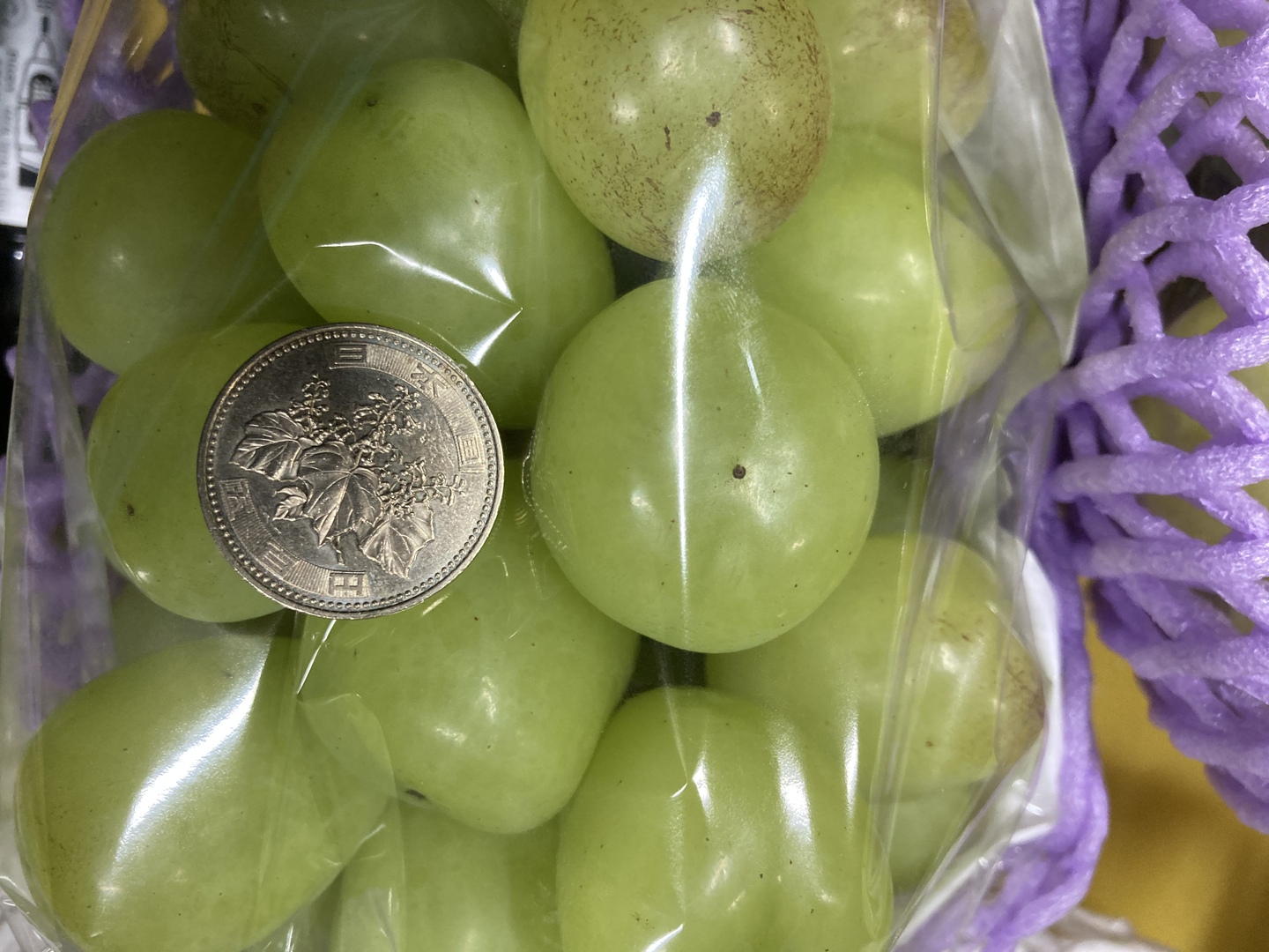 天山とシャインマスカットの交配で誕生したぶどうで、病気に弱くて、裂果しやすい、栽培が難しい品種です‼️個人的には、大好きなぶどうで、食べるスポーツドリンクです♪ 一粒がでかいのですが、意外とパクパク食べれて、皮がホントあるかないかって感じです😄