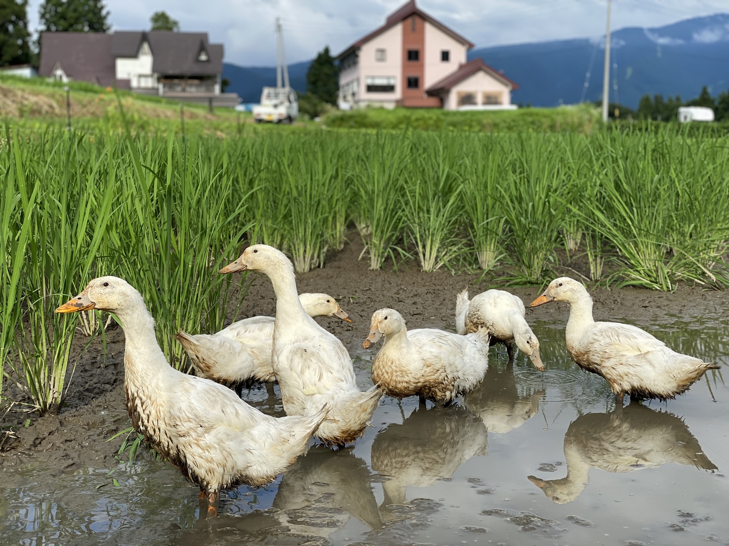 2020年からはあひる合鴨農法に取り組みました。あひると合鴨達が完璧な除草をしてくれて、稲に刺激を与えてくれたおかげで納得の農薬を使わない栽培のササシグレができます。