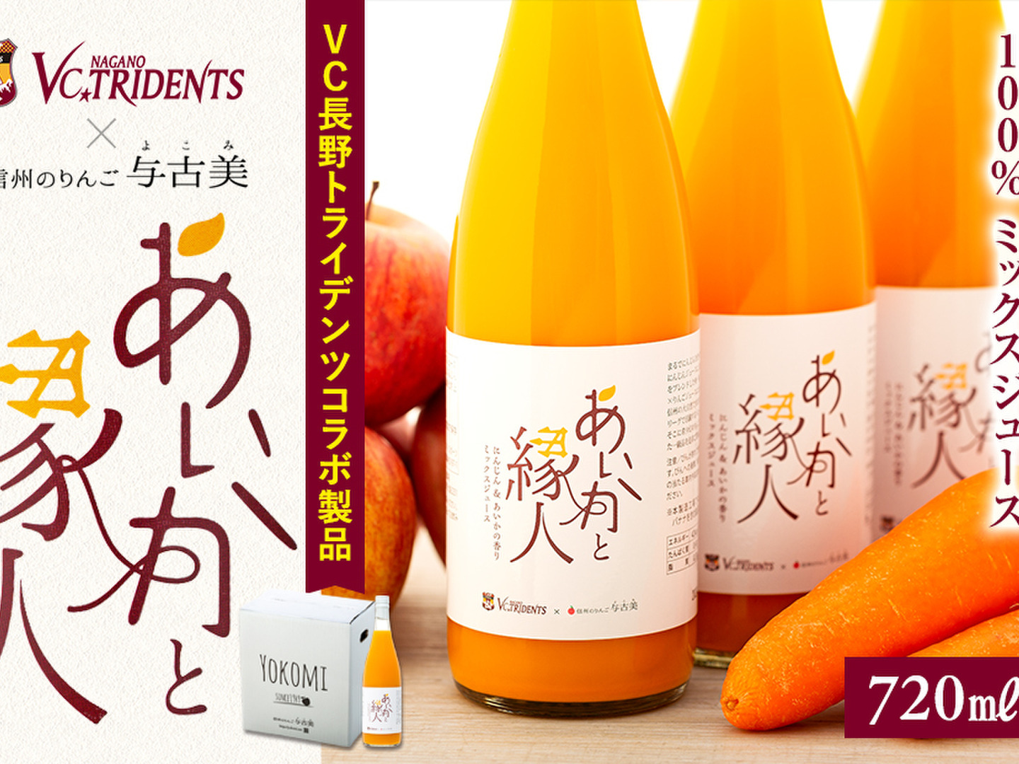 VC長野トライデンツの選手が育てたにんじんとりんご「あいかの香り」を掛け合わせた100%りんご×にんじんのミックスジュースがついに登場!!