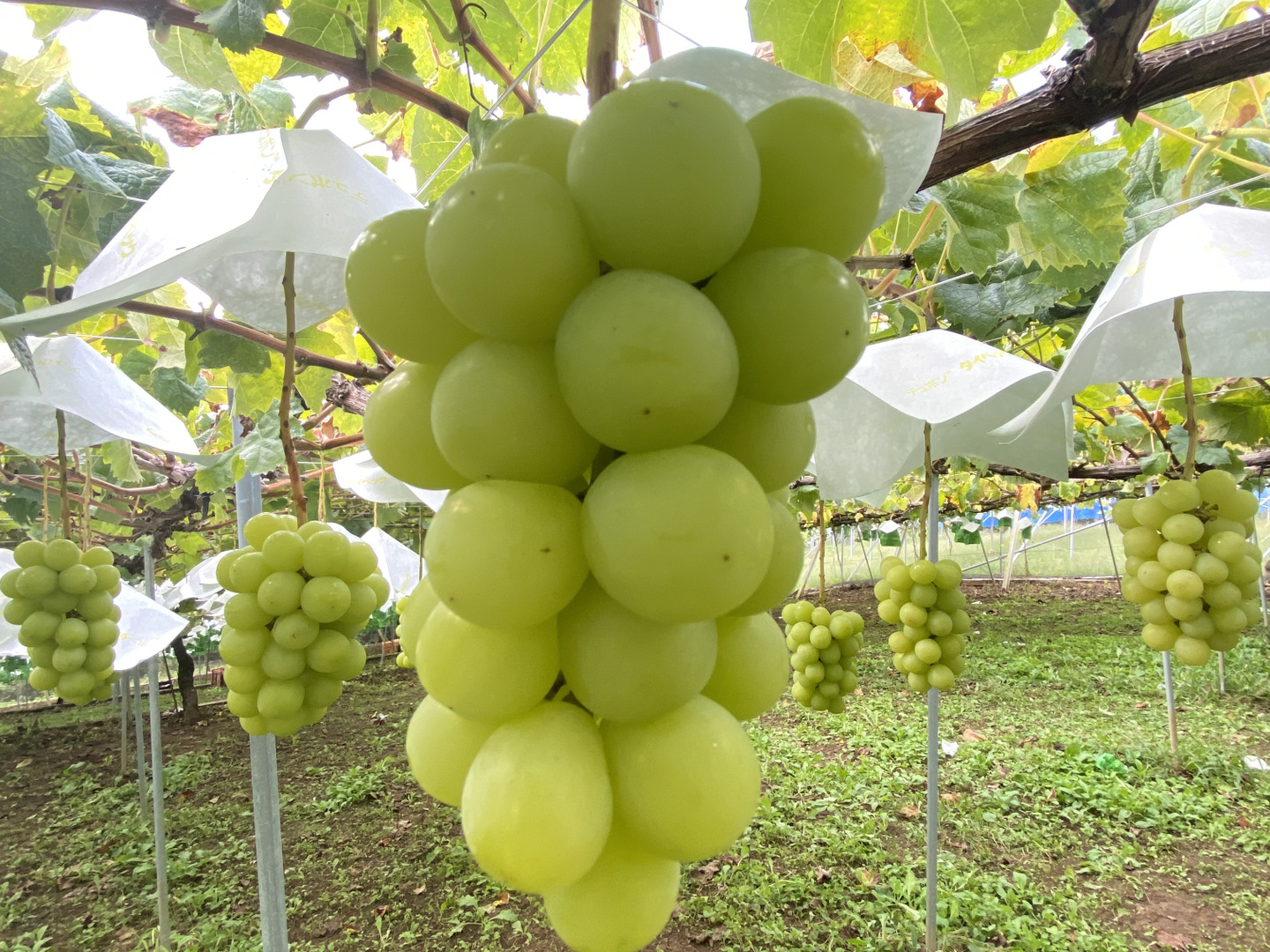 日当たりも良く土壌にも恵まれた園地では、大粒ぶどうのシャインマスカット/巨峰/ピオーネ、隣接した園地ではワインブドウの甲州種も盛んに栽培されています。