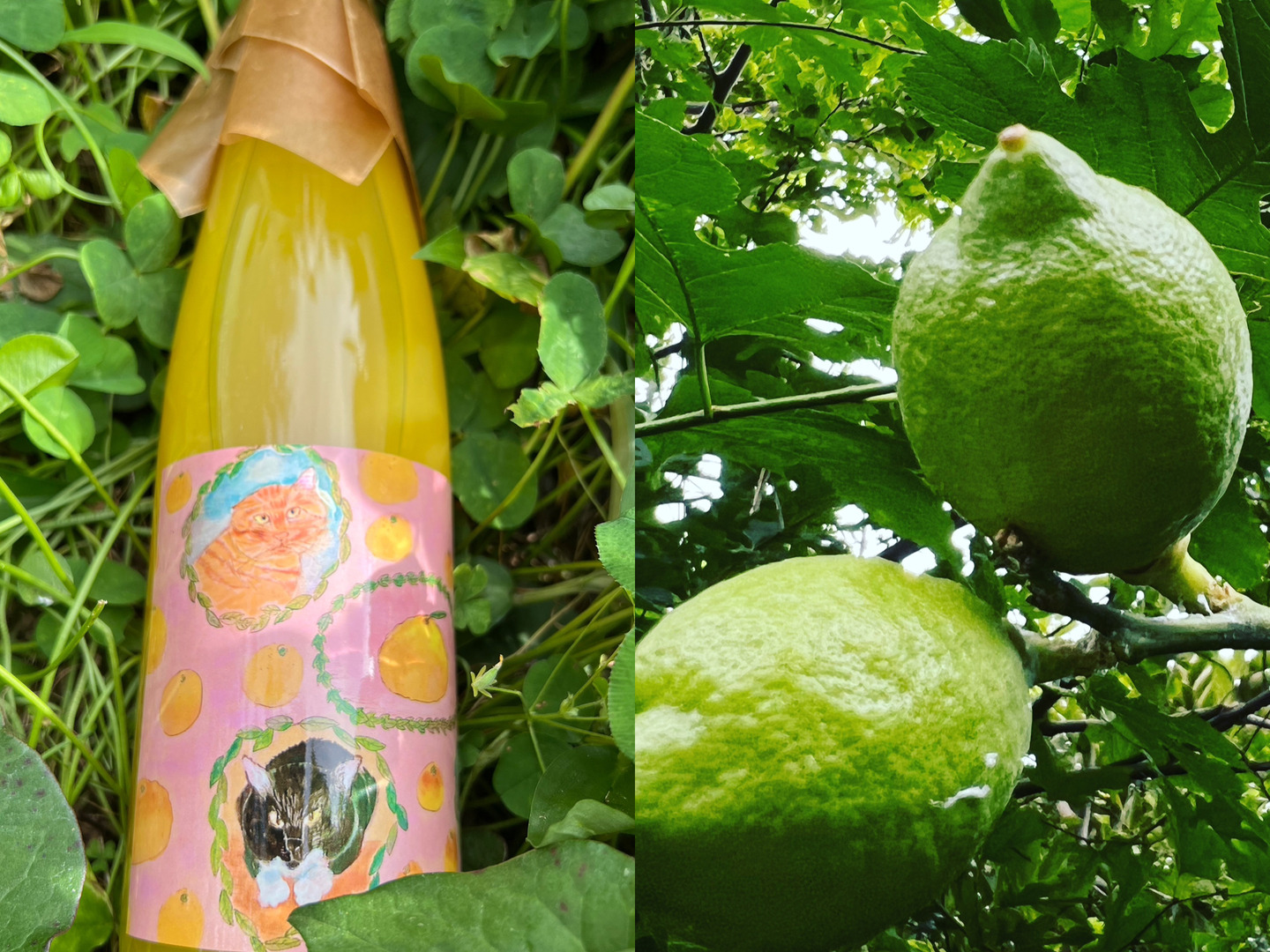 甘夏を皮剥いて搾ったストレートジュースです。レモン500gとセットです。レモンはだんだんと黄色になっています。