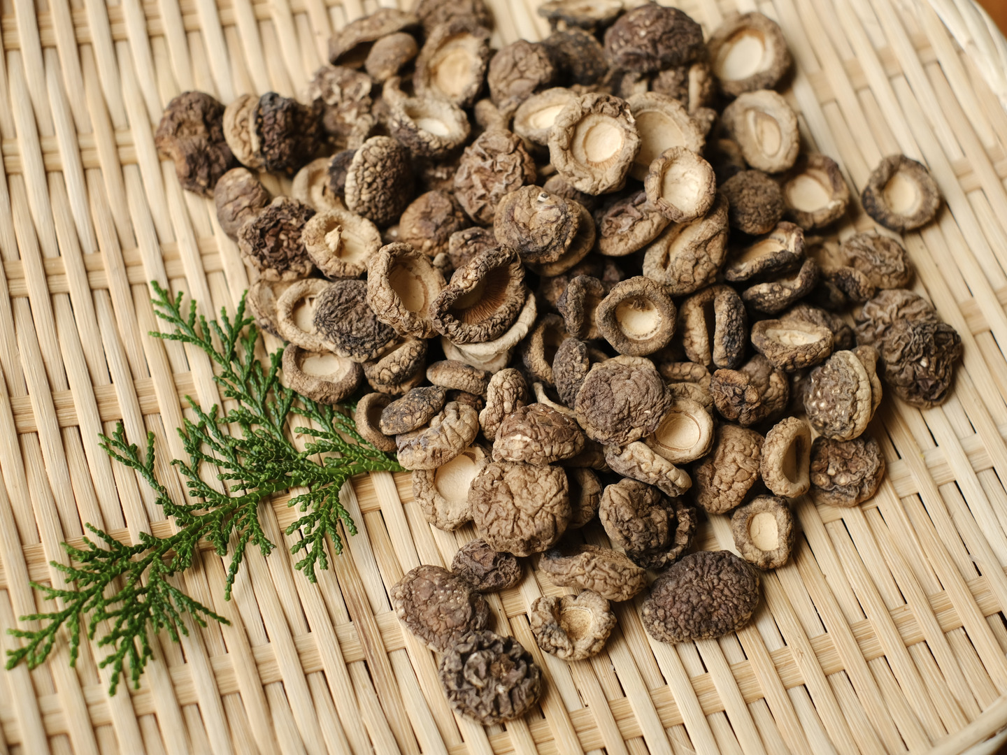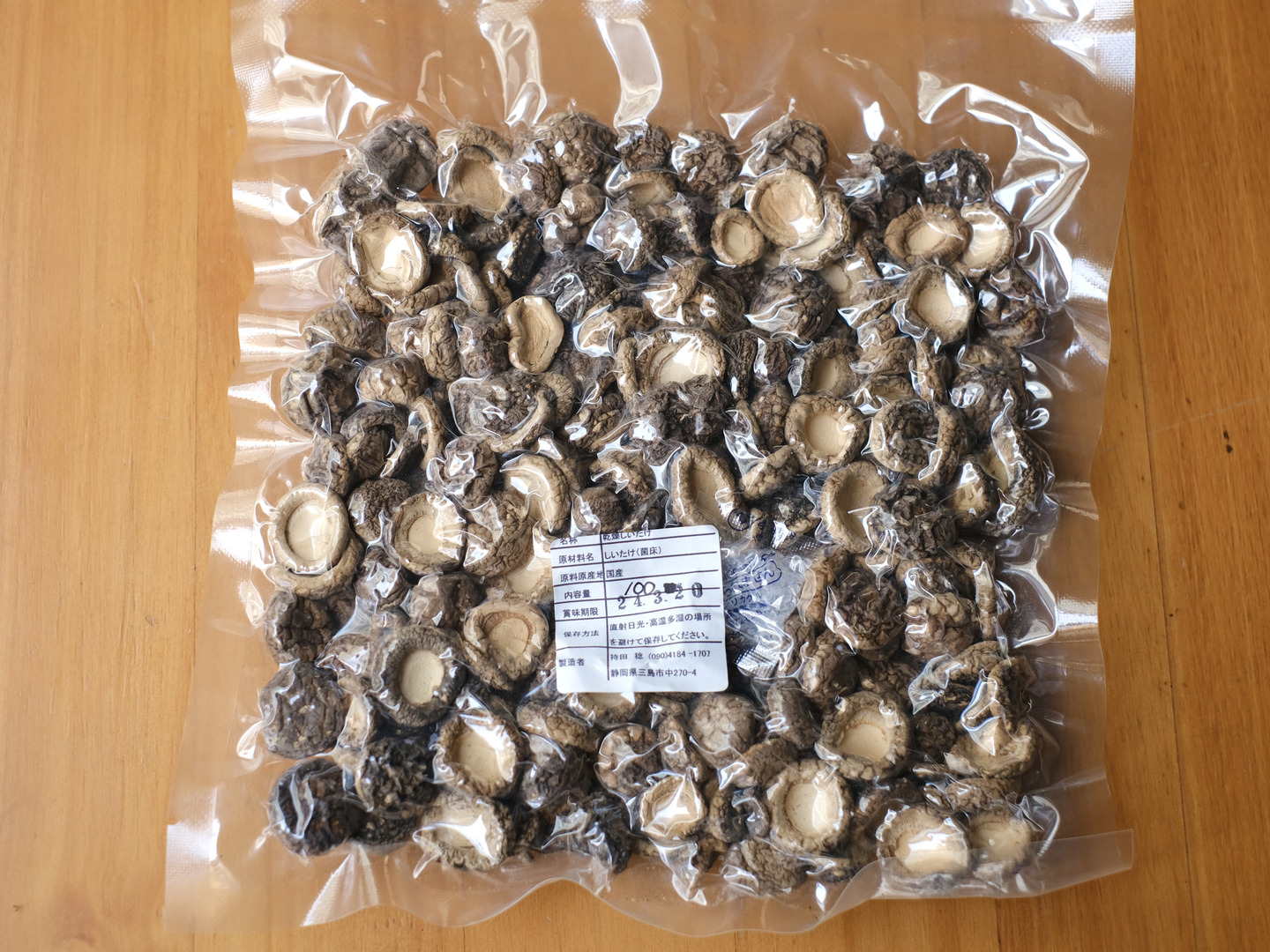 自然豊かな静岡県三島市で富士山の湧水を利用し、農薬不使用で栽培された直径2.5cm以下の、小さな乾燥椎茸です。