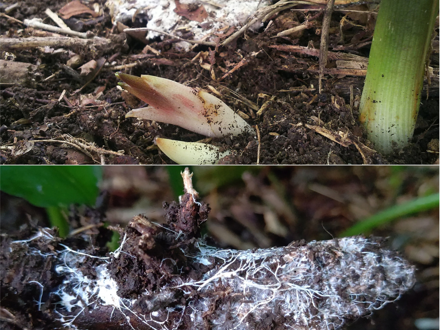 多年草で毎年同じ所から生えてきますので、必然的に不耕起栽培となり、少量の鶏糞や渇き防止などに枯れ草は入れますが、あとは堆積した腐葉土に覆われて育ちます。腐葉土には菌糸がたくさんで柔らかな土質の中で育っていきます。ハウス栽培物ではないので、天然に限りなく近いですが項目ひとつしか選べないので、表記としては農薬化学肥料不使用となります。