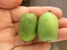 毛のないキウイを小さくした形で一粒は中玉ブドウほどの大きさです。