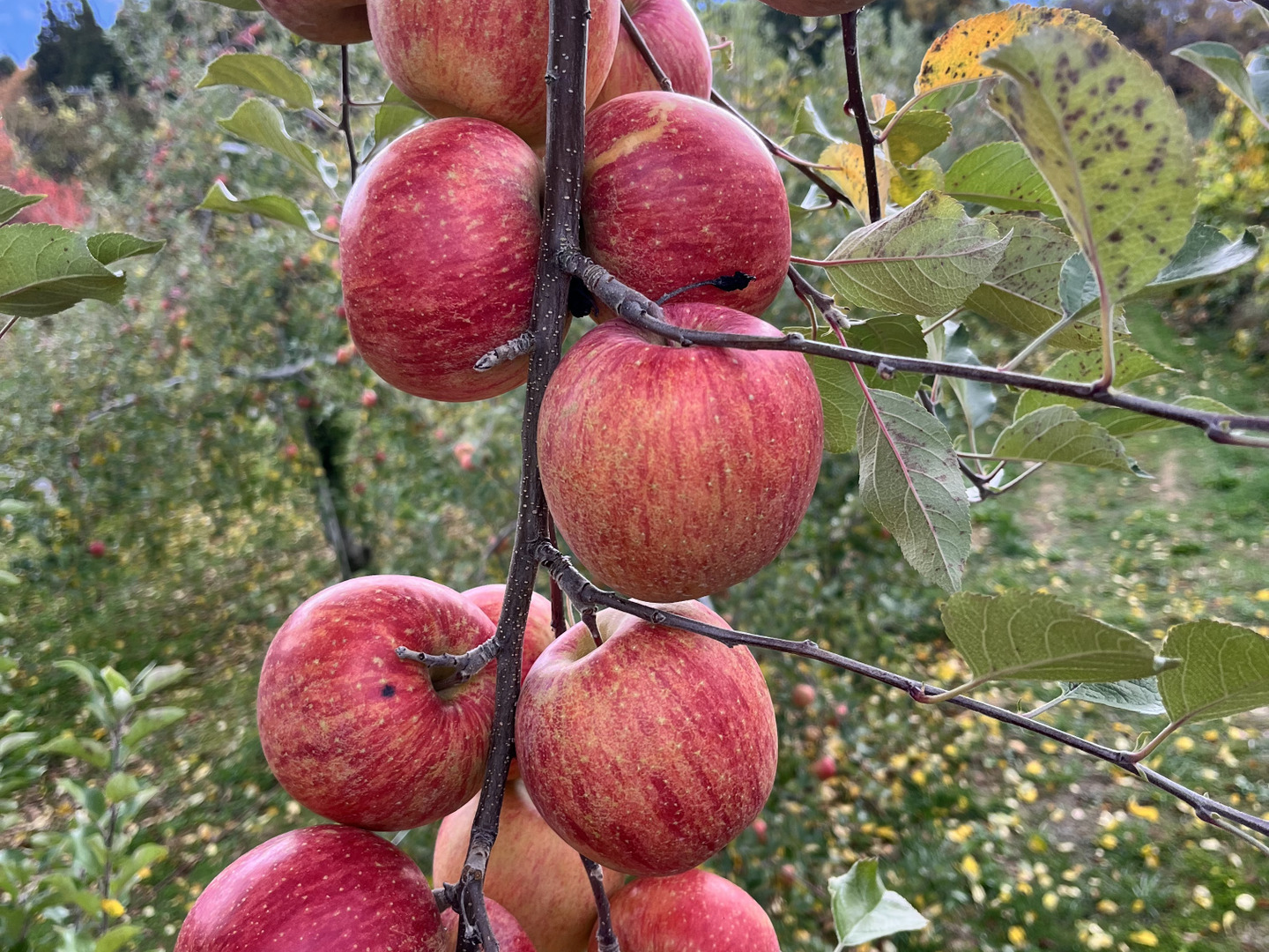 また、葉とらず栽培なので、色むらや全体的に色が薄い、赤くないりんごも入る場合がございますが、見た目がキレイなものよりもお得な値段で販売致します。悪い部分を取り除いてお召し上がりください。