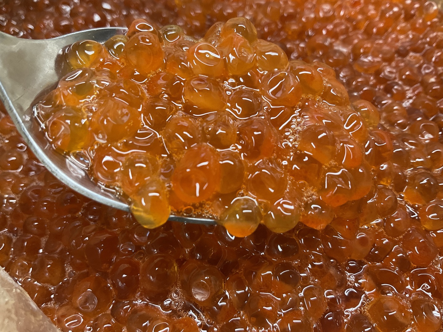 - 今年は筋子が小さく、水揚げ激減のため非常に高価です。