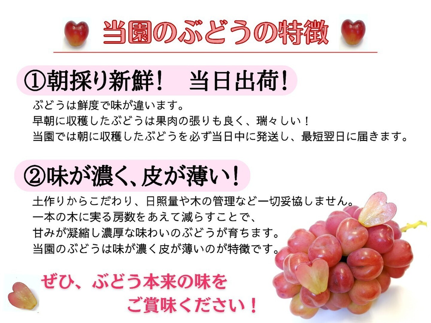 ぶどう栽培は365日作業がありますが、お客さんにぶどうをお届けできる日は1日しかありません。その1日がどんな理由でも、潰れたぶどうが届いてしまうと、それまでの364日が全て無駄になってしまいます。
