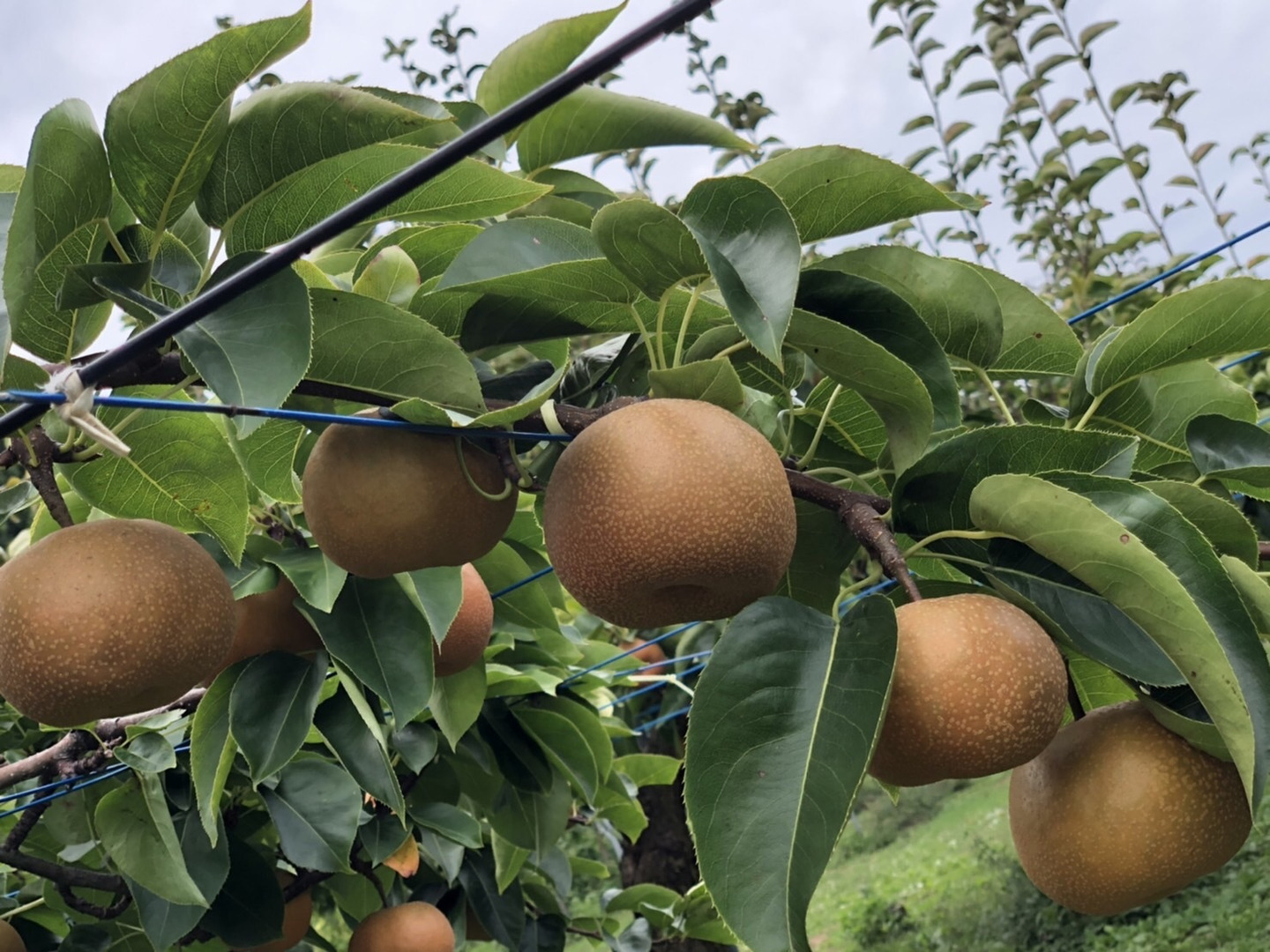 男鹿市の北東側に位置する中石(ちゅういし)地区は北東北最大の和梨の産地。寒風山から続くなだらかな高台は砂地で水はけがよく、くわえて海が近いため昼夜の寒暖差があり、甘味の優れた梨を作るための好適地となっています。
