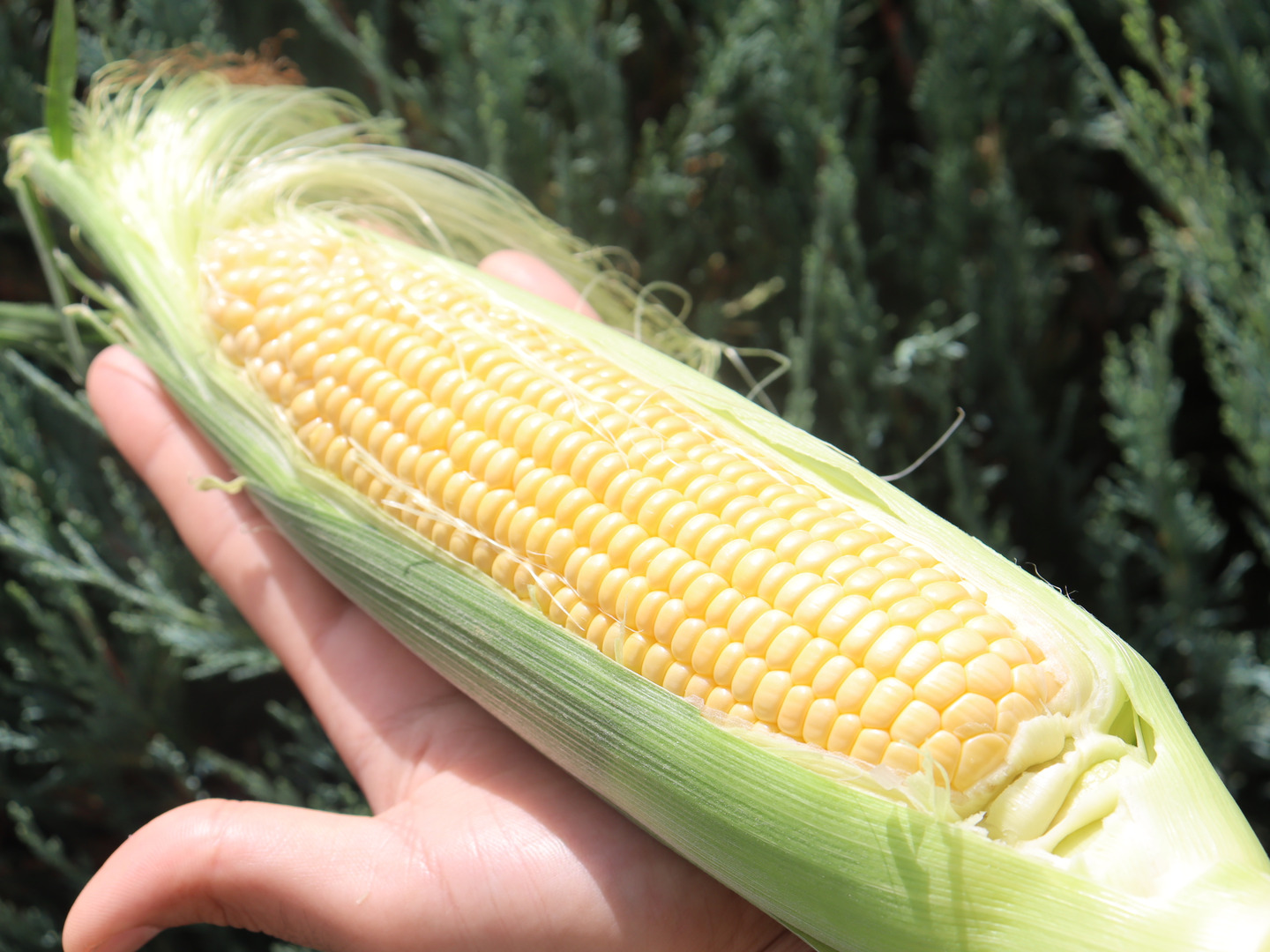 とうもろこしの中でも極めて甘いゴールドラッシュの生でも食べられるタイプ。皮が柔らかく、噛んだ瞬間に口いっぱいに広がるとうもろこし本来のジューシーなクリーミーな美味しさです。