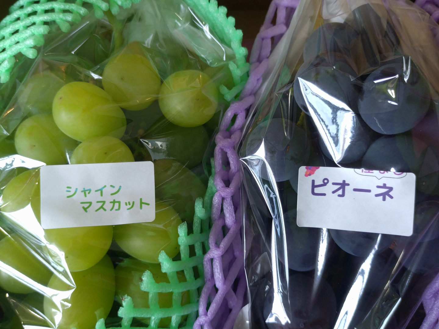 ご覧頂いてありがとうございます。大粒ぶどう家庭用『シャインマスカット&ピオーネ』をセットにしての販売ですー。