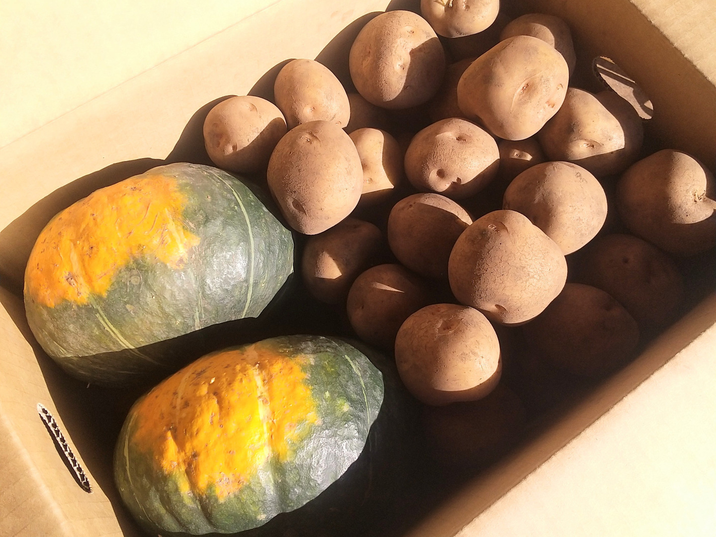 ホクホクで甘味の強いかぼちゃイーティーと、甘味が強くて人気のじゃがいもキタアカリの詰め合わせセットです。