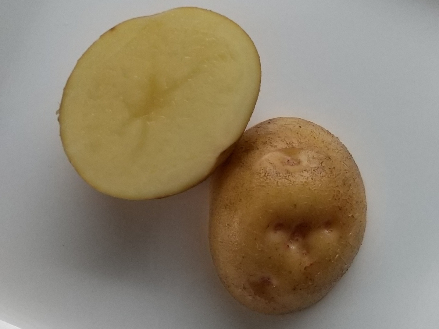 キタアカリは、ホクホクで甘みが強く、北海道で人気の品種です。見た目は男爵に似ていますが、男爵よりも果肉の黄色が濃く、「くりじゃがいも」とも呼ばれています。