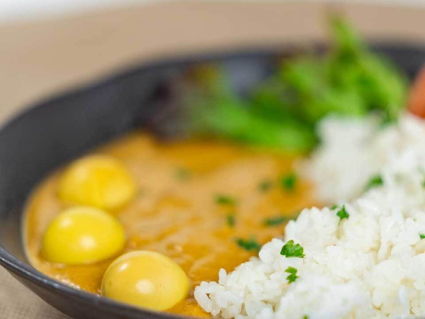 - うずらの肉でだしを取ったカレー