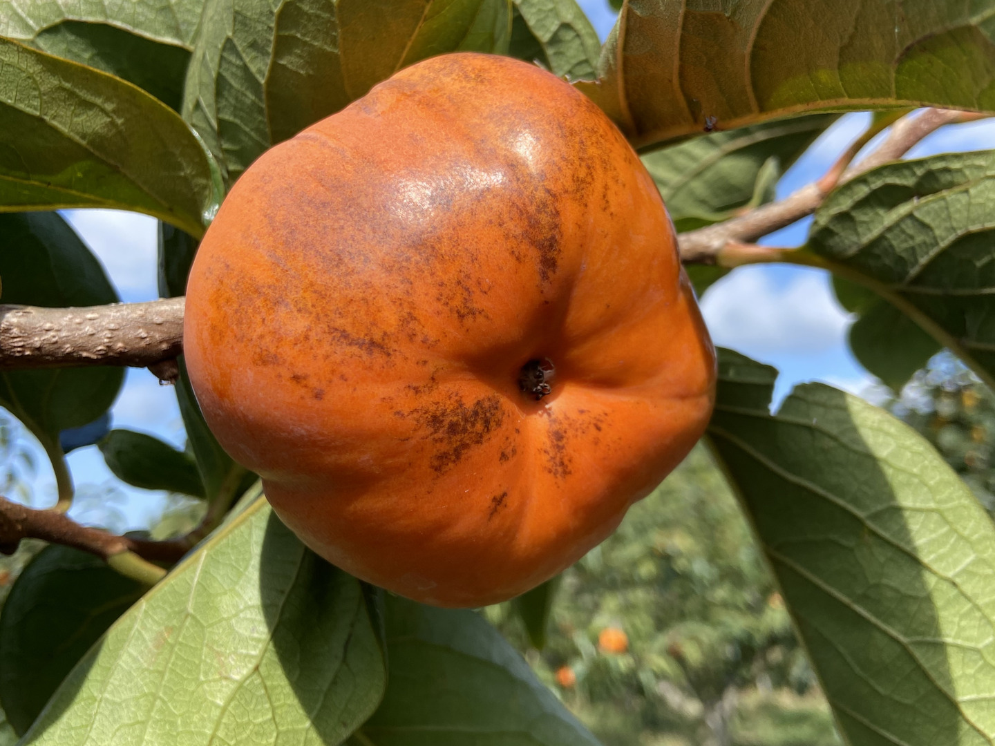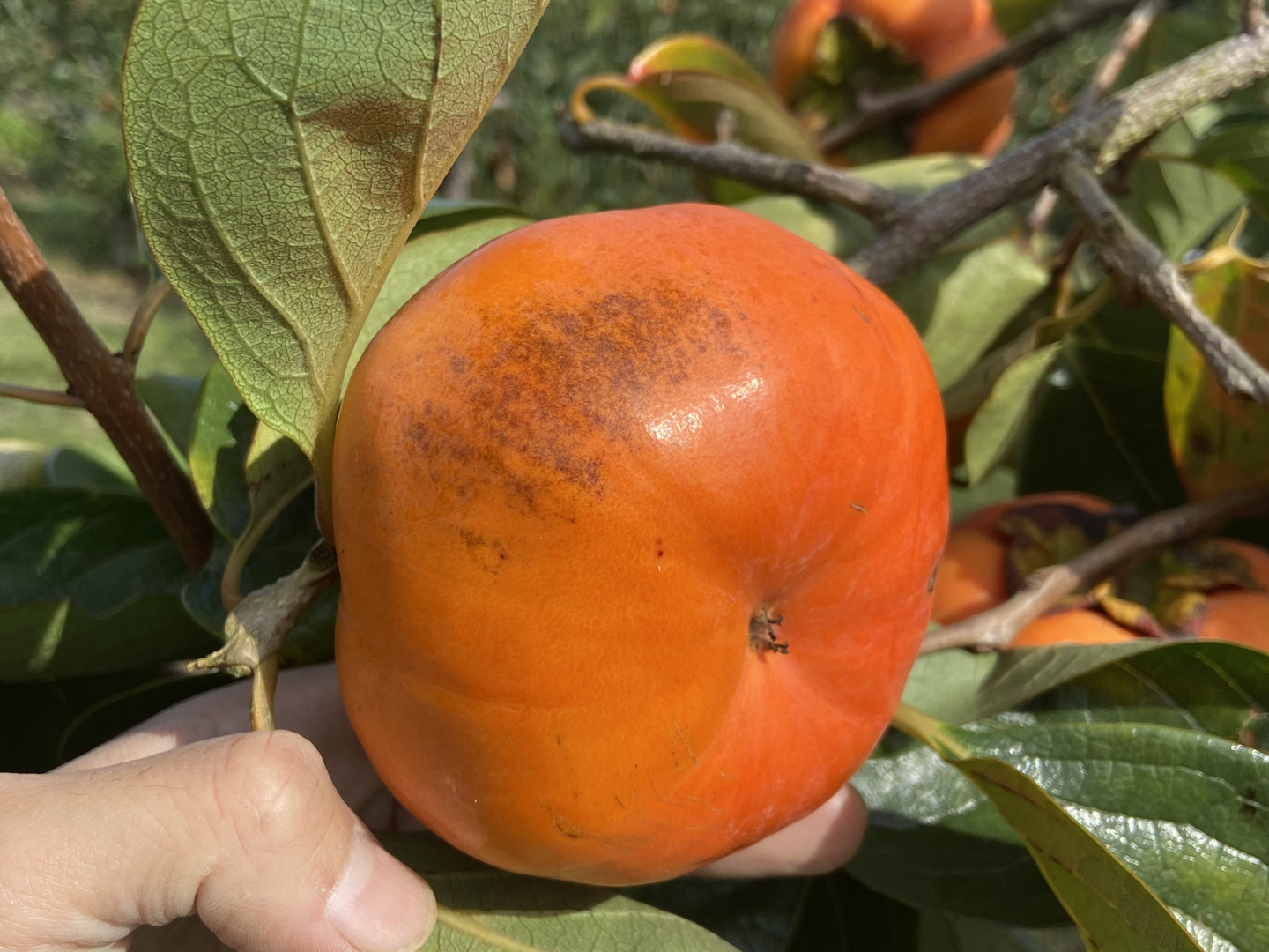 墨を塗った様に黒いので見た目があまり良くないのです。日差しや風通しの良い畑で育った早秋柿は、十分に糖度ののった10月中旬頃に秋雨をもらうと墨を塗ったように黒くなるようです。岐阜県では「お墨付き早秋柿」として販売されている様ですよ!