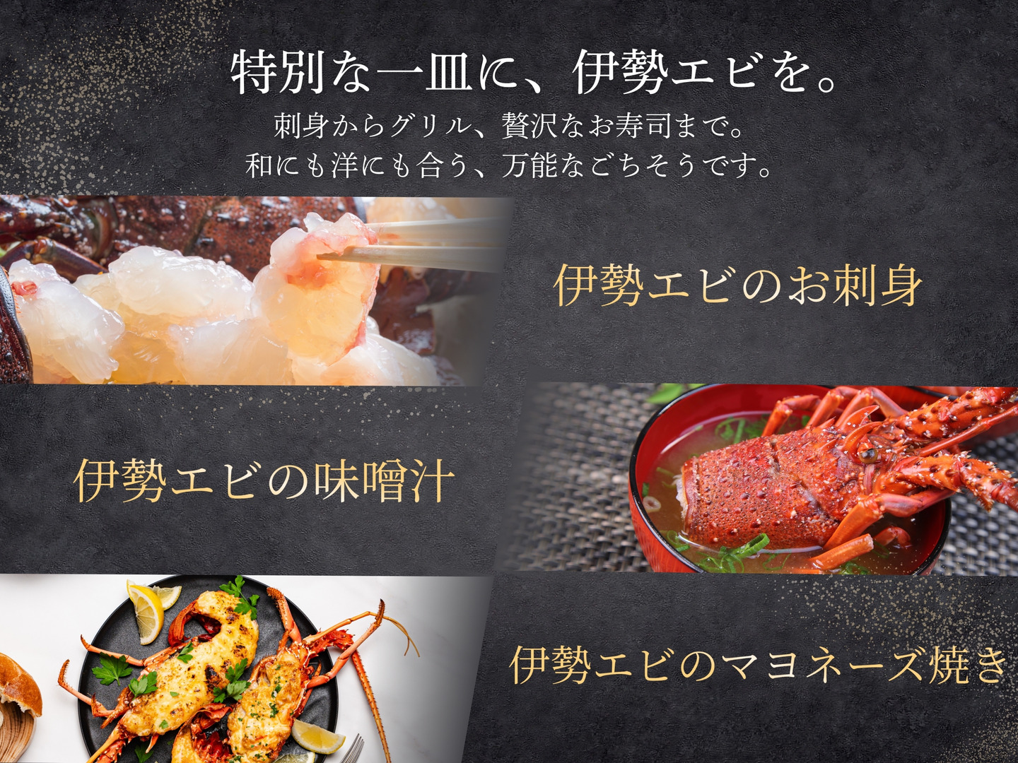 - 柔らかくて甘味のある大きめサイズの伊勢エビ