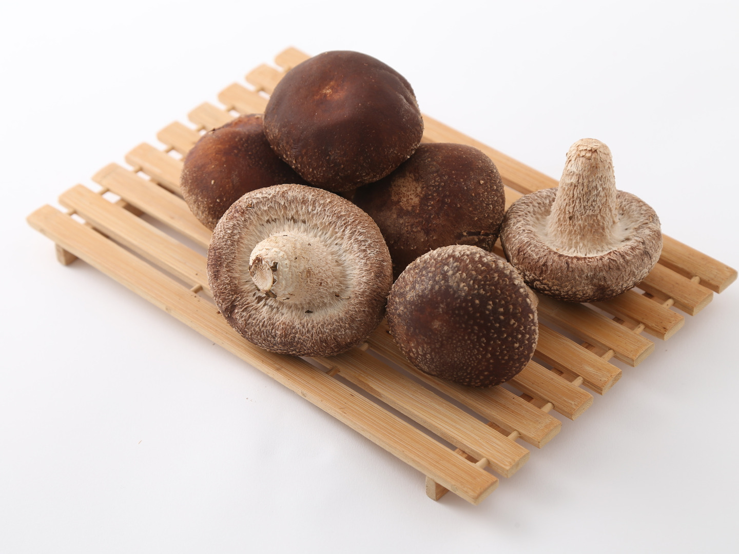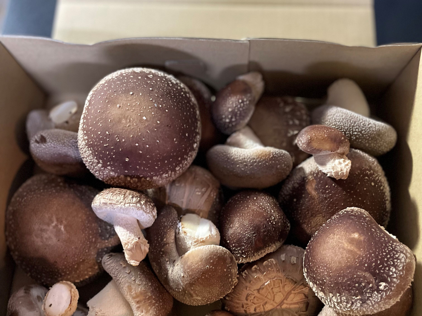 森産業の菌。富富(トムトム)・113・126・金太郎の4品種を使用していて、どの品種も肉厚でクセの少ない食べやすい椎茸です。