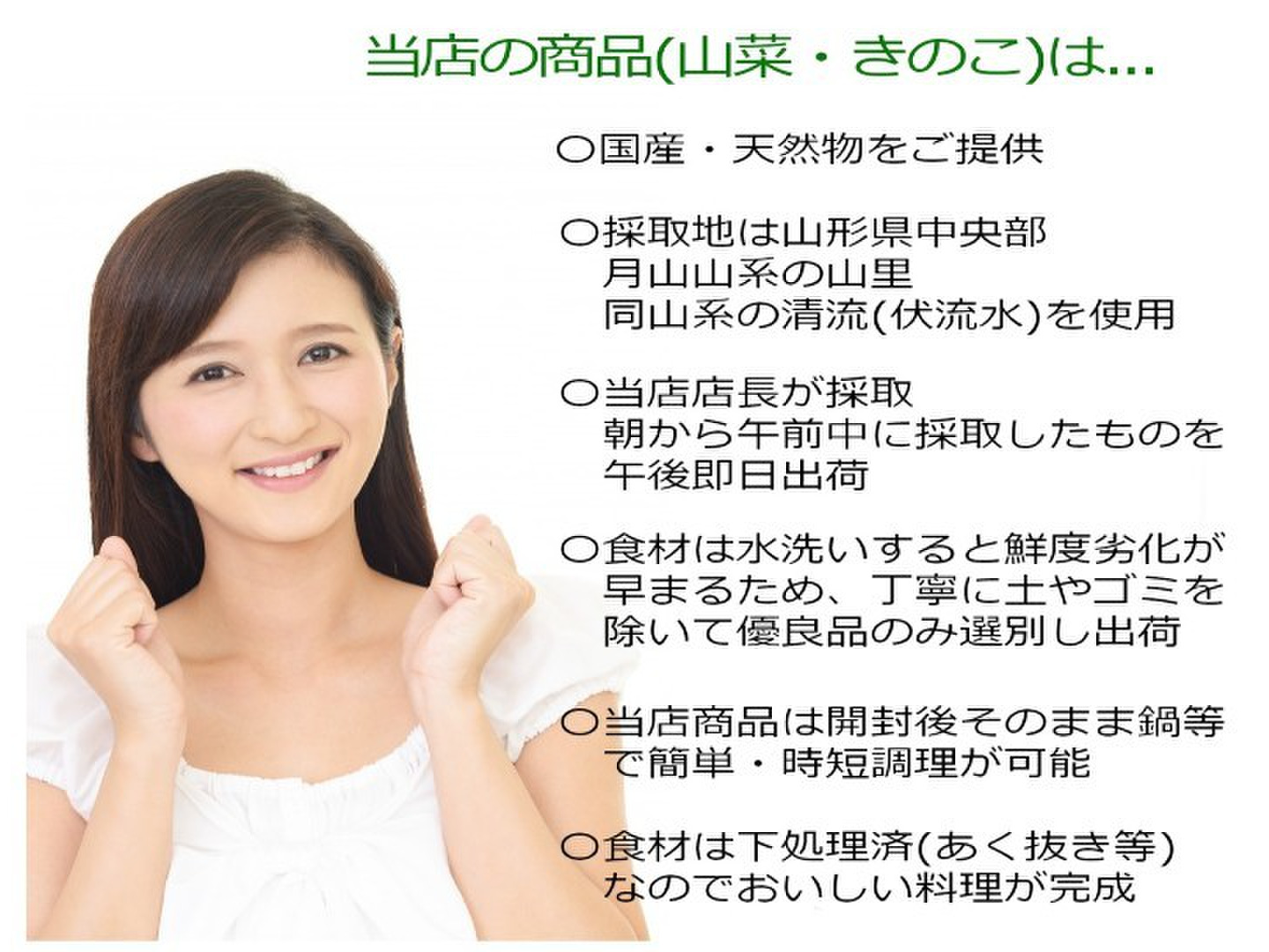 - 1 山菜・きのこはそのほとんどが天然物です。お米・果物・加工品は地元の我々生産農家が丹念に真心こめて育て上げた作物です。