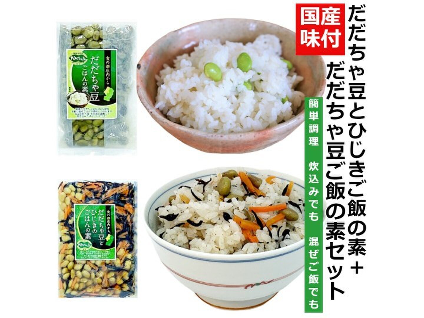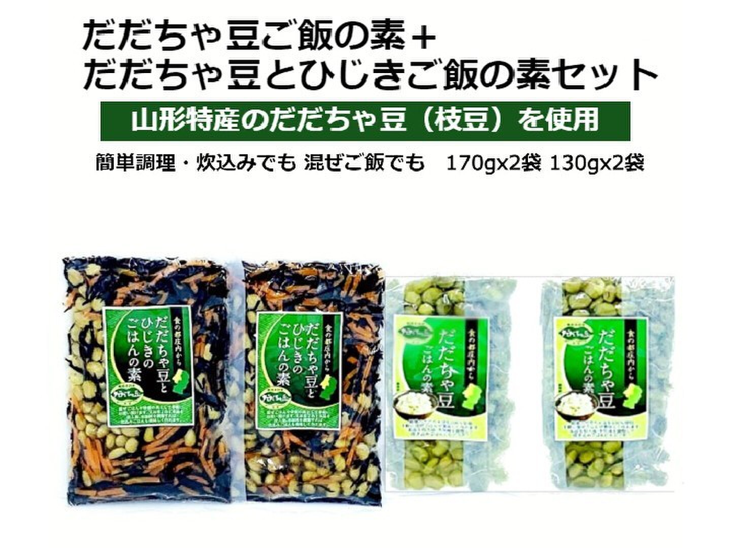 国産 枝豆 だだちゃ豆とひじきのご飯の素・だだちゃ豆ご飯の素 各2袋