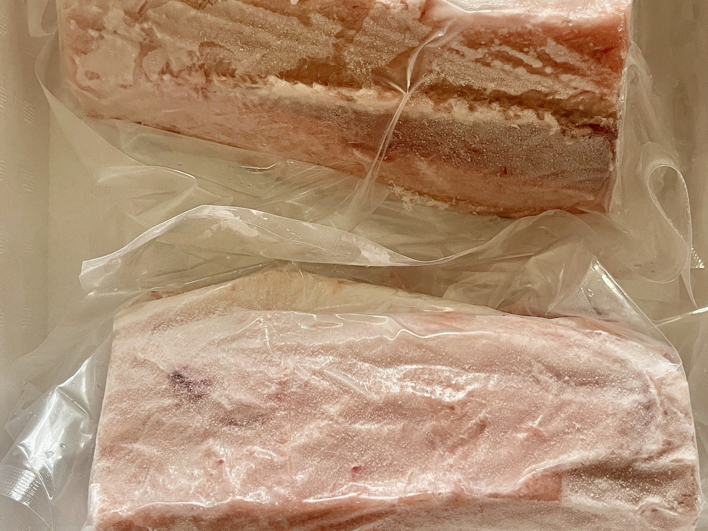 解凍方法は冷蔵庫で半日程度又はお急ぎの場合は袋のまま氷水につけて1時間〜1時間半程度解凍してください。