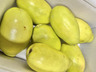 お送りするかりんのまだ緑がかっているものは、お手元に届いてから追熟の必要がございます。表面が黄色く、油成分がテカテカしてくるまで常温保存をお願いいたします。