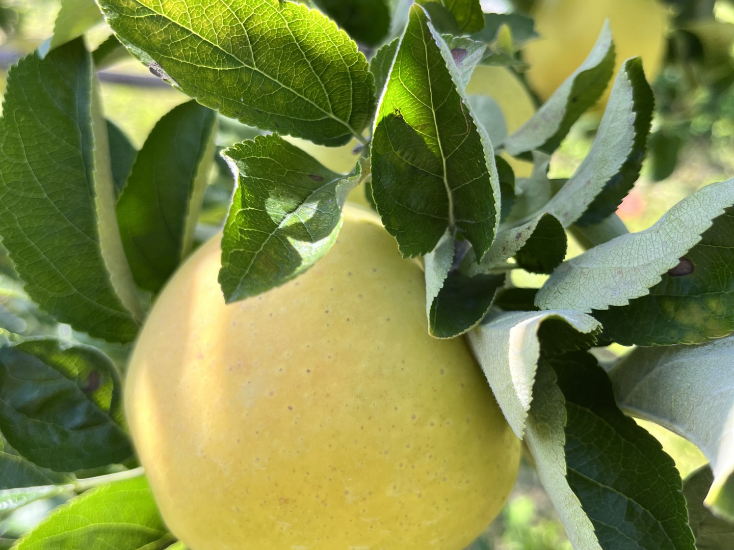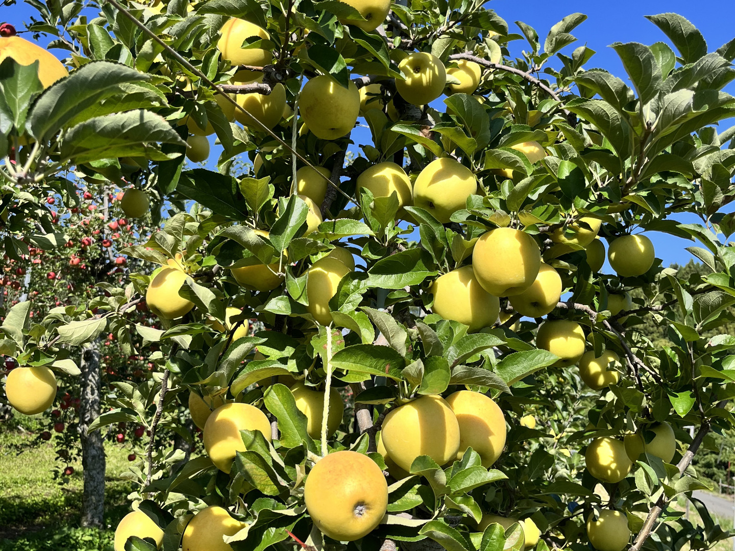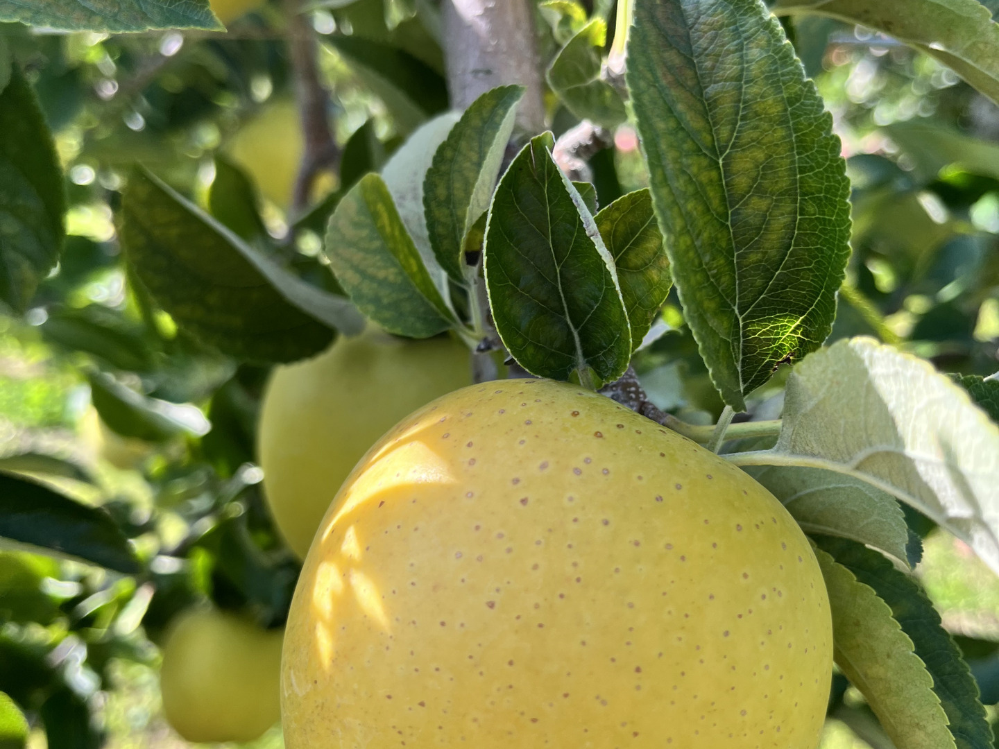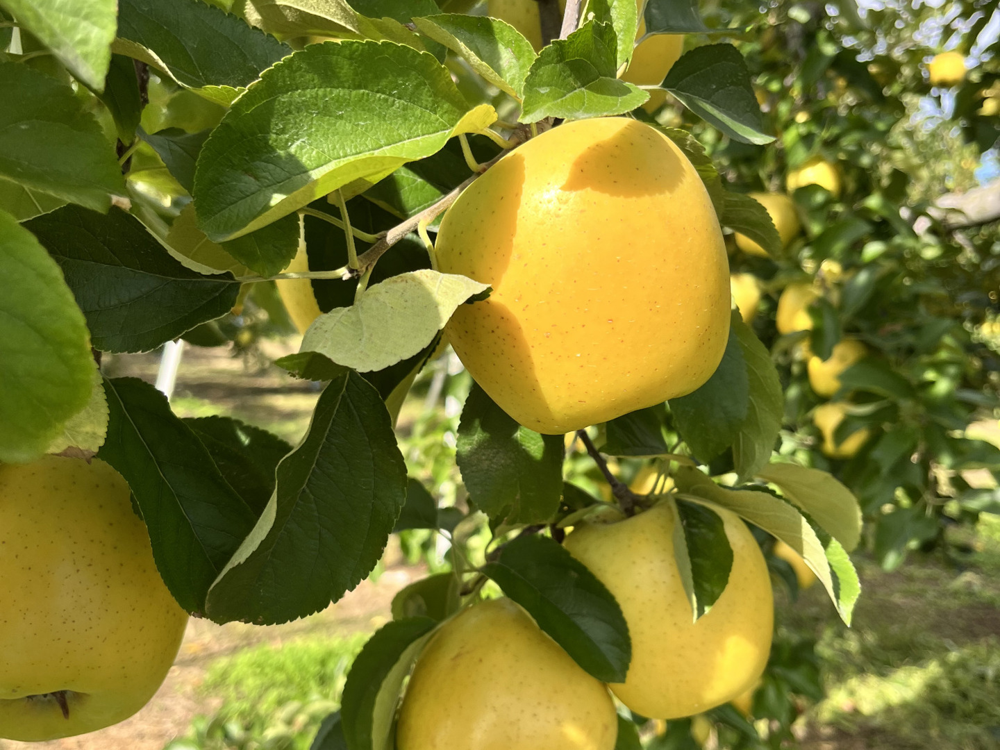 注目度ナンバーワンの黄色りんご、シナノゴールド。長野県産りんごのなかでも味はピカイチ! 長野『りんご三兄弟』の末っ子、三男・三女にあたる品種です。