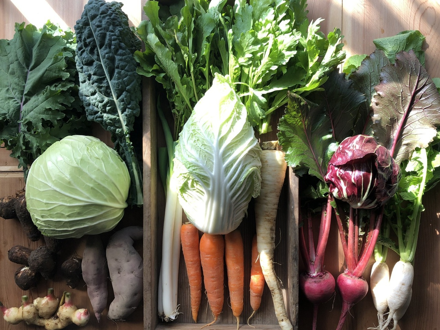 2015年より永続的に採種と栽培が可能である作物「固定種」のみを栽培しています。近年主流の一代交配種(通称F1種)に比べ、生育の勢いや姿形の揃いが劣るとされていますが、しっかりした素材の風味がかけがえのない魅力だと思っています。長く厳しい冬ですが、旨味を蓄え寒さに耐えた格別の野菜をお届けします。